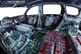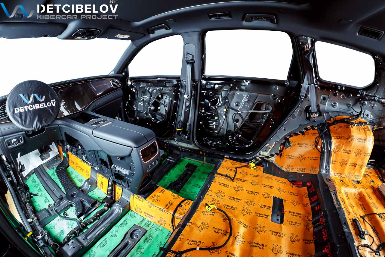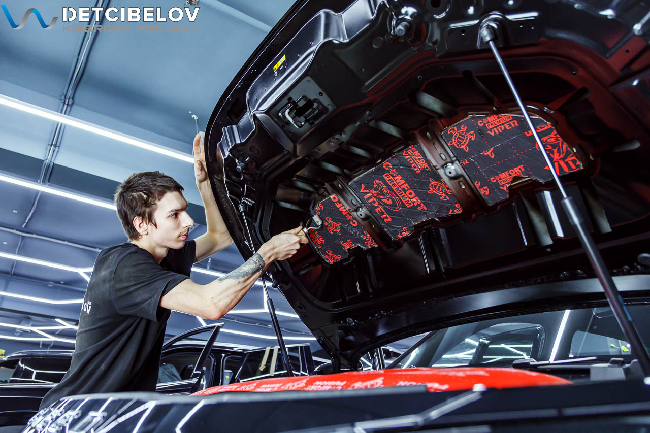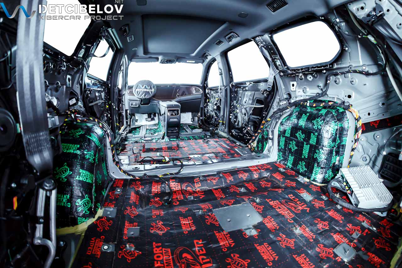 • Никаких компромиссов! Только топовые материалы последнего поколения от ТМ "Comfort mat" с максимальной эффективностью и максимальным количеством слоев. Также использование вибродемпфирующих материалов высокой жесткости с разогревом в печи и дополнительной напыляемой шумоизоляцией для колесных арок.
