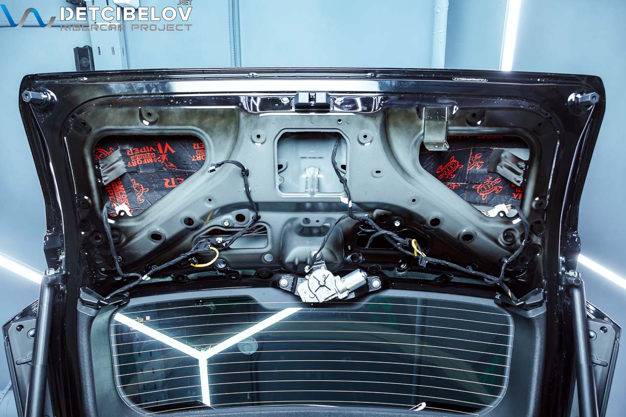 С целью снижения шума от крышки багажника наносим на нее Comfort mat Viper. Для изоляции пластиковой панели наклеиваем на нее Comfort mat Wave Expert. По итогу все проделанные работы позволяют добиться: