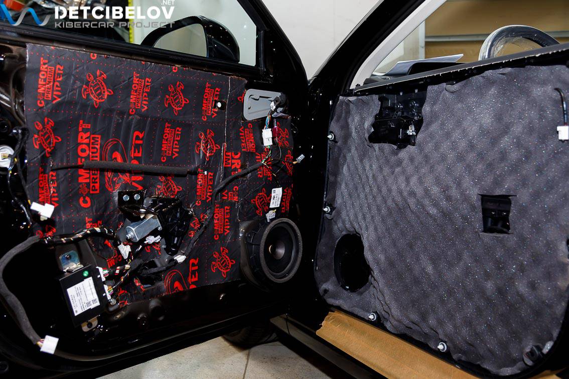 • Никаких компромиссов! Только топовые материалы последнего поколения от ТМ "Comfort mat" с максимальной эффективностью и максимальным количеством слоев. Также использование вибродемпфирующих материалов высокой жесткости с разогревом в печи и дополнительной напыляемой шумоизоляцией для колесных арок.