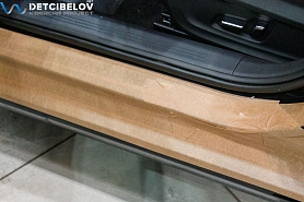 Заключительный этап – укладка шумопоглощающего материала Comfort mat Wave Expert 15 мм. Он выполнен из пенополиуретановой пенорезины, способной поглощать звуковые волны в широком диапазоне частот. Укладка шумопоглотителя создает условия для более плотной посадки дверей, что снижает вероятность скрипов и скрежетов.