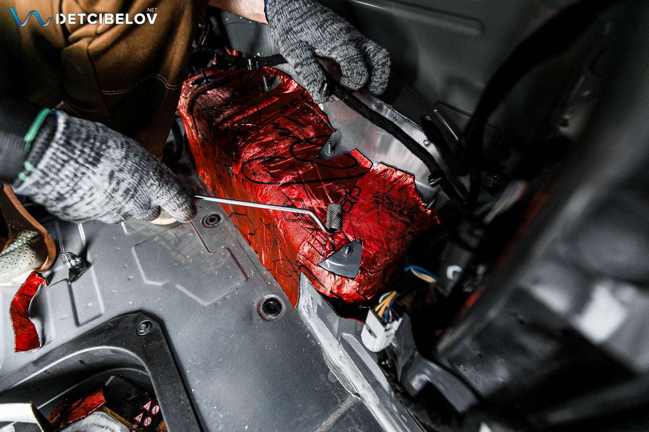 • Шумо-виброизоляция с максимальным уровнем подавления звука, абсолютный максимум. Мы полностью разбираем автомобиль до металла, не оставляя ни единого пластикового элемента или доп.оборудования. Весь металл обезжиривается и плотно укатывается топовыми материалами последнего поколения Aerocell от бренда STP. Обязательно заполняются все пустоты, наносится звукопоглощающая мастика методом распыления и лента антискрип на все зоны риска.