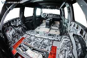 • Никаких компромиссов! Только топовые материалы последнего поколения от ТМ "Comfort mat" с максимальной эффективностью и максимальным количеством слоев. В работе используем вибродемпфирующие материалы высокой жесткости с разогревом в печи, чтобы улучшить адгезию материала. Для колесных арок применяем дополнительную напыляемую шумоизоляцию .