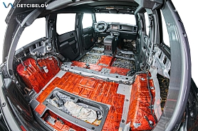 • Максимальный уровень защиты салона автомобиля от шума с применением материалов последнего поколения Aerocell, уровень Level 3 от бренда STP. В качестве основного материала используется инновационный материал на основе гранул из полипропилена Aerocell и мастика в рамках одного слоя, а также комбинированный материал-сэндвич Bromo с мембраной NoiseBlock2.