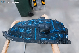 Подкрылки обезжириваем и наносим вибродемпфер Comfortmat Aerospace Volt (2,5 мм) — инновационный материал, состоящий из виброакустической мастичной основы со стохастическим распределением вспененных гранул (это повышает вибродемпфирующие и звукоизолирующие свойства несмотря на относительно низкую плотность виброакустической мастики) и лицевого покрытия из алюминиевой фольги из специального сплава Scale One, изготовленный по технологии Aerospace. Серия Aerospace служит материалом "Одного слоя", он совмещает в себе виброизоляционные и шумоизоляционные свойства одновременно. Самый лёгкий вибродемпфирующий материал в своём классе.