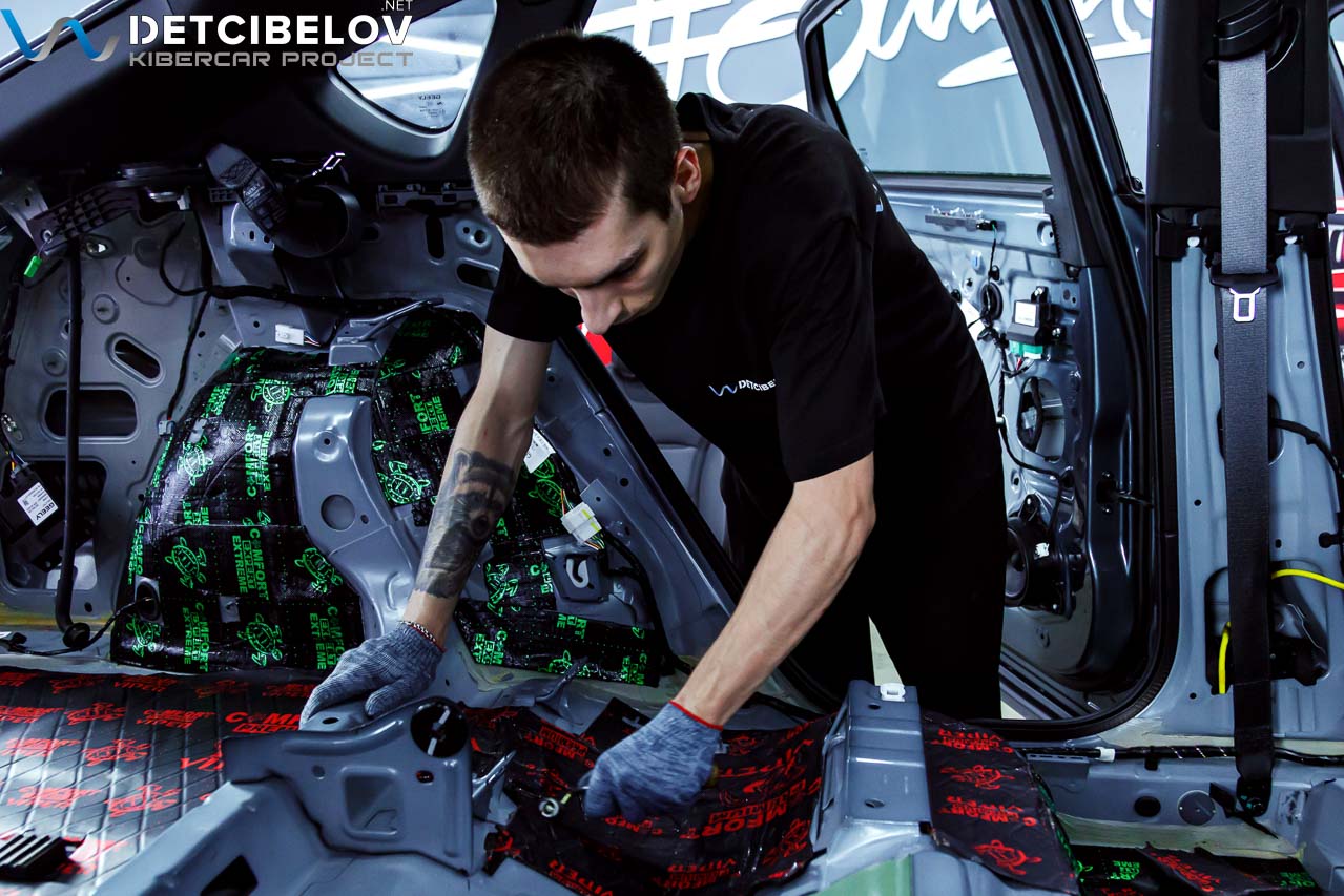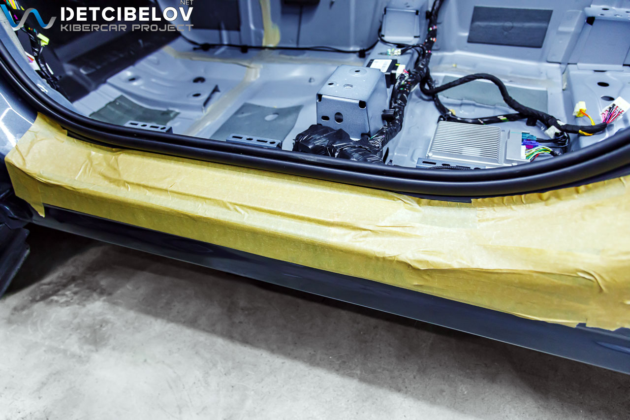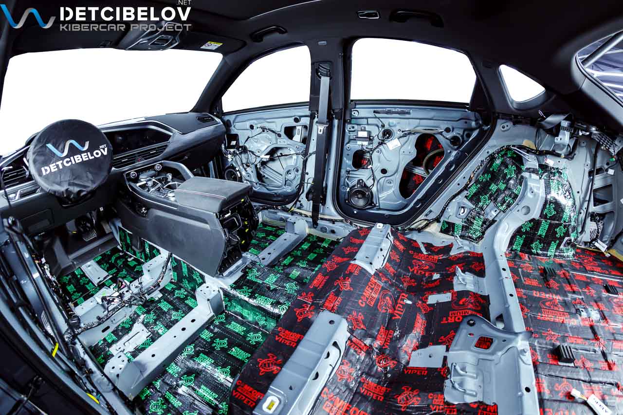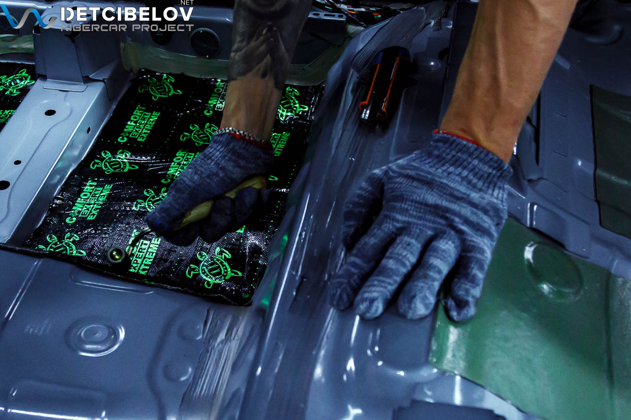 • Никаких компромиссов! Только топовые материалы последнего поколения от ТМ "Comfort mat" с максимальной эффективностью и максимальным количеством слоев. Также использование вибродемпфирующих материалов высокой жесткости с разогревом в печи и дополнительной напыляемой шумоизоляцией для колесных арок.