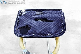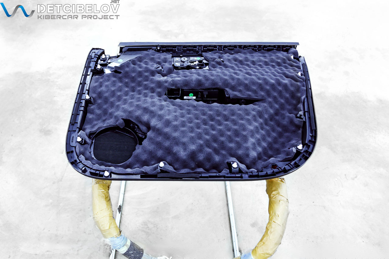 На карты дверей укладываем Comfort mat Wave Expert 15 мм – шумопоглотитель на основе полиуретановой пенорезины. Объемный и легкий материал поглощает звуковые волны в широком диапазоне частот. После сжатия материал быстро восстанавливает свою первоначальную форму, что облегчает монтаж.