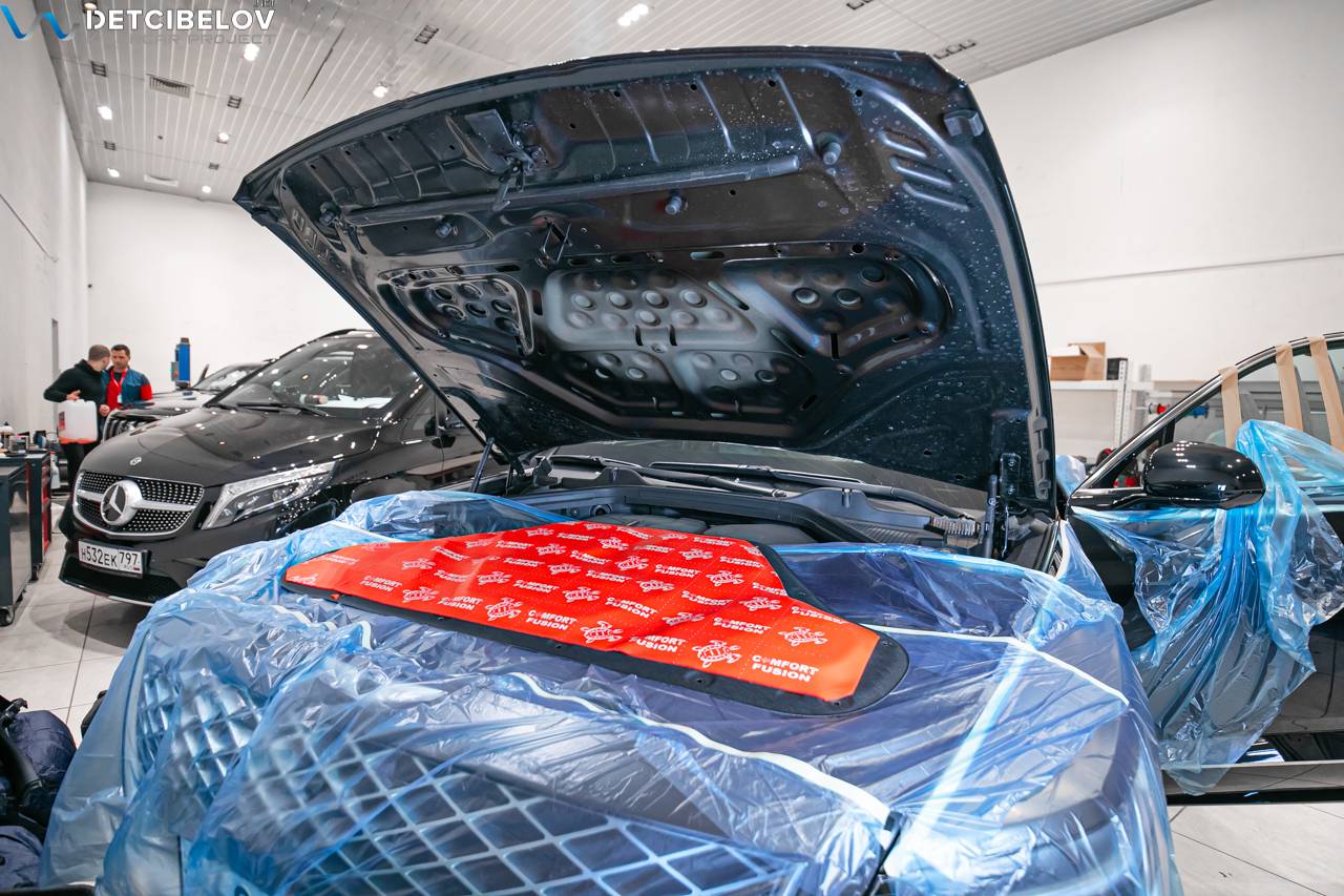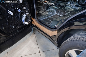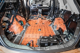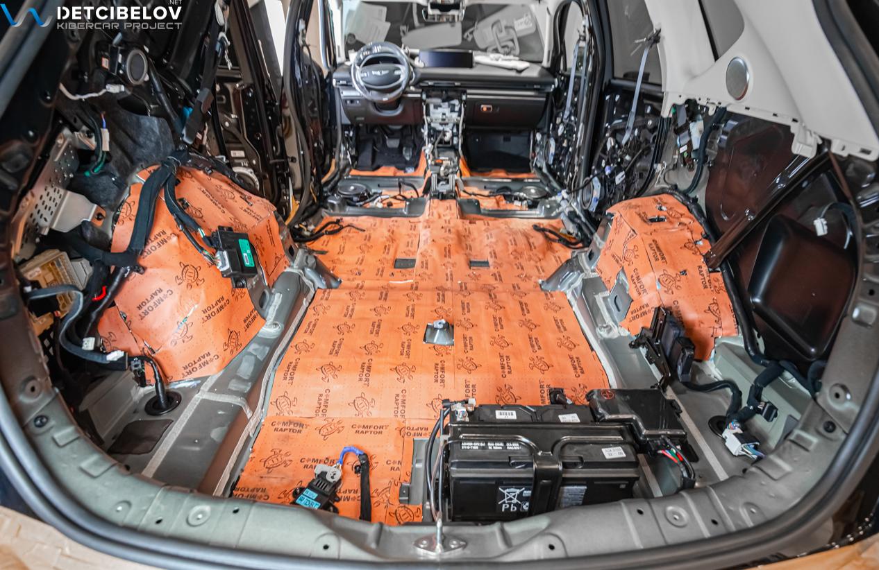 • Никаких компромиссов! Только топовые материалы последнего поколения от ТМ "Comfort mat" с максимальной эффективностью и максимальным количеством слоев. Также использование вибродемпфирующих материалов высокой жесткости с разогревом в печи и дополнительной напыляемой шумоизоляцией для колесных арок.