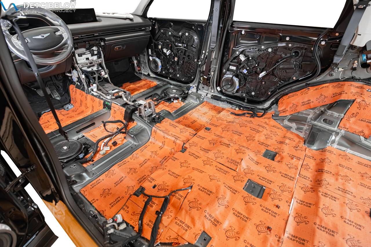 Сделаем тише Genesis GV80 в 5.04 раза за 16 часов с гарантией отсутствия скрипов и поломанных элементов салона