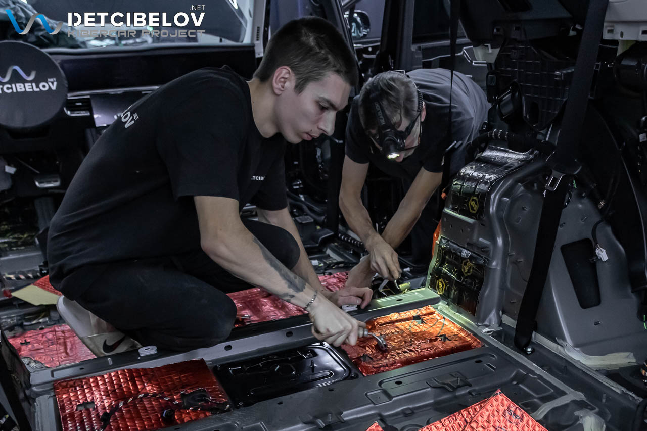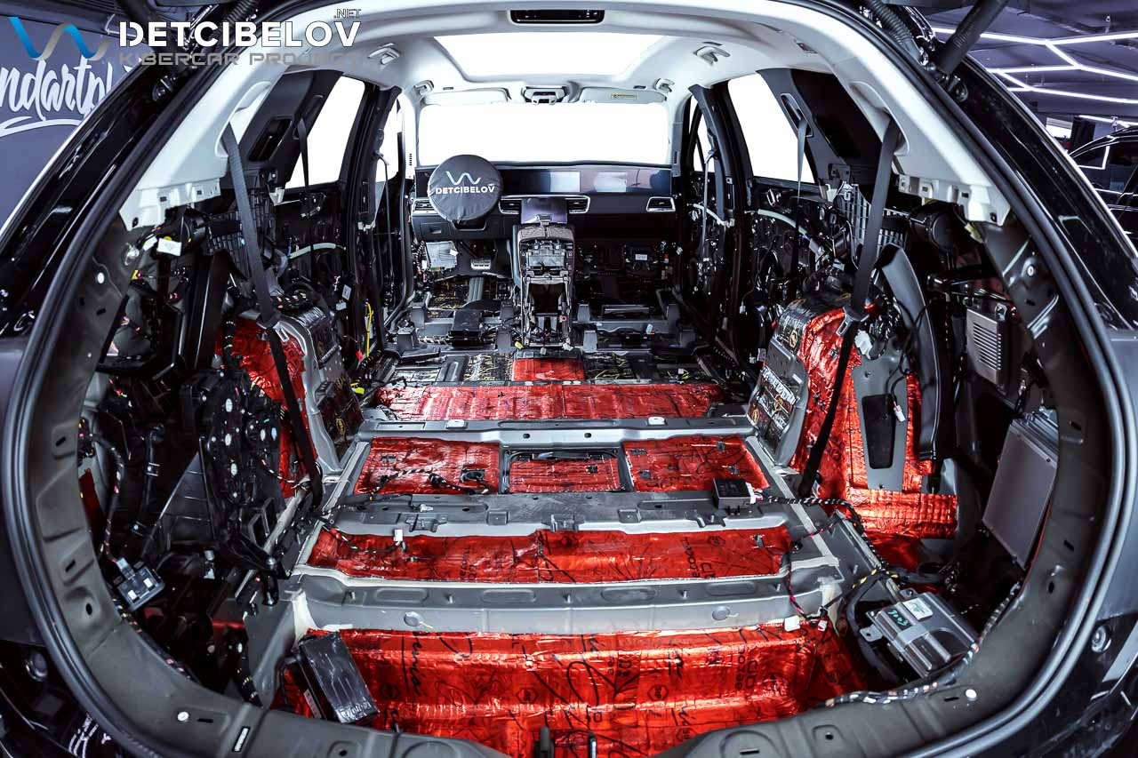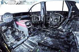 • Никаких компромиссов! Только топовые материалы последнего поколения от ТМ "Comfort mat" с максимальной эффективностью и максимальным количеством слоев. Также использование вибродемпфирующих материалов высокой жесткости с разогревом в печи и дополнительной напыляемой шумоизоляцией для колесных арок.