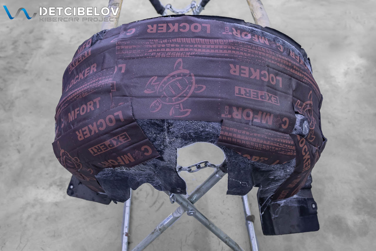 Подкрылки обезжириваем и наносим вибродемпфер Comfort mat Locker (3 мм) – абсолютно новая разработка облегченной звукоизоляционной мембраны для шумоизоляции войлочных подкрылков.