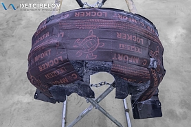 Применение специальной облегченной мембраны позволяет существенно увеличить индекс собственной звукоизоляции войлочного подкрылка, при этом не создавая большую нагрузку на элементы крепления (пистоны) подкрылка, а небольшая толщина мембраны (3мм) позволяет обрабатывать любой подкрылок без усложнения его обратного монтажа.