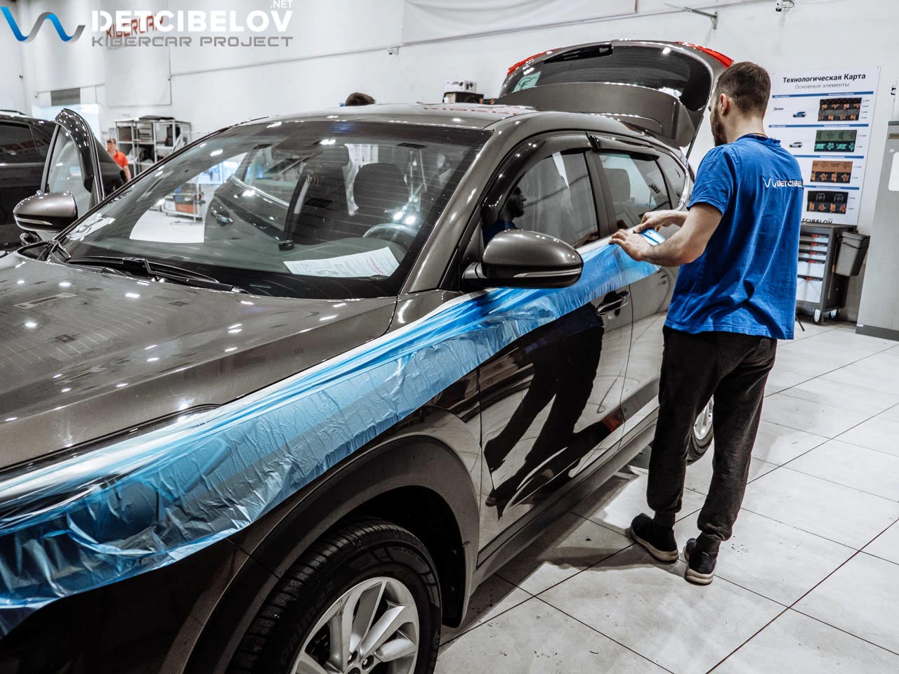 Итак, мы начинаем! А начинаем с того, что демонтируем все детали и защитим ваш Hyundai пленкой.