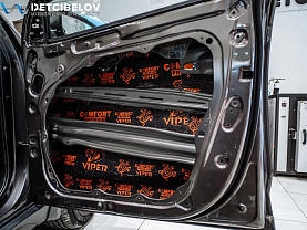 На элементы внутренней части конструкции наклеиваем дополнительно Viper. Он эффективно гасит остаточные вибрационные колебания при сильном хлопке дверью.