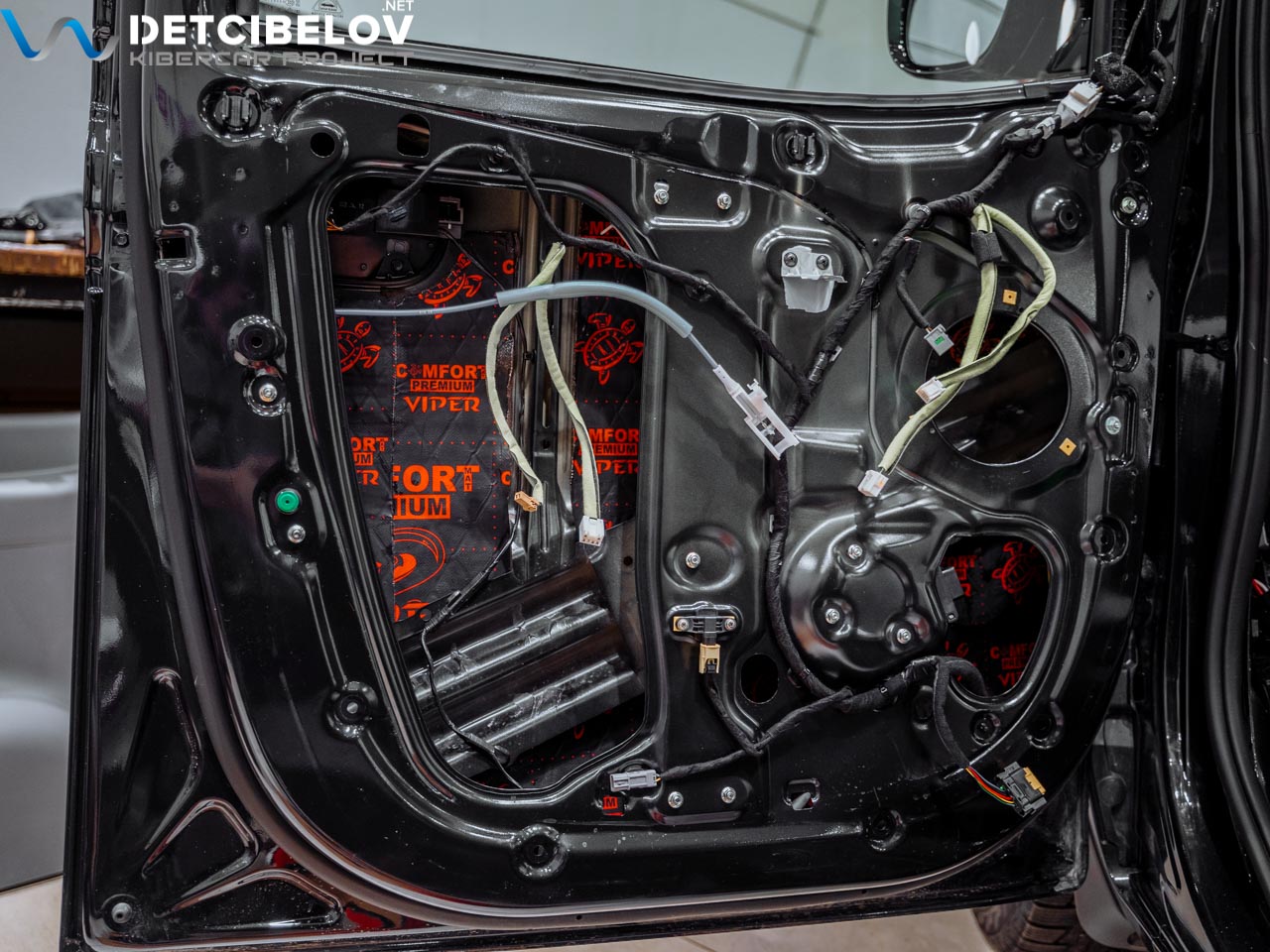 В качестве третьего слоя на участке дверей мы использовали еще один слой вибродемпфера Comfort mat Viper. Он необходим для блокировки структурных шумов и подавления вибраций. Материал толщиной 3 мм может использоваться даже в условиях ограниченного пространства.