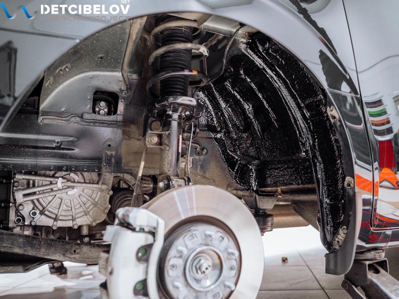Шумоизоляция торпедо и колесных арок снаружи – за доплату.