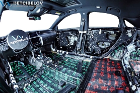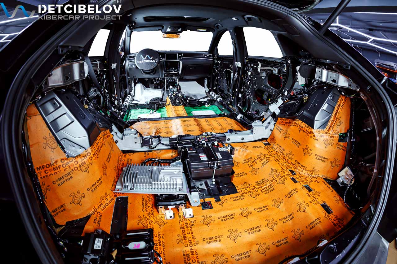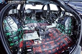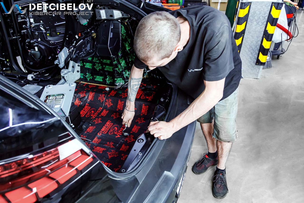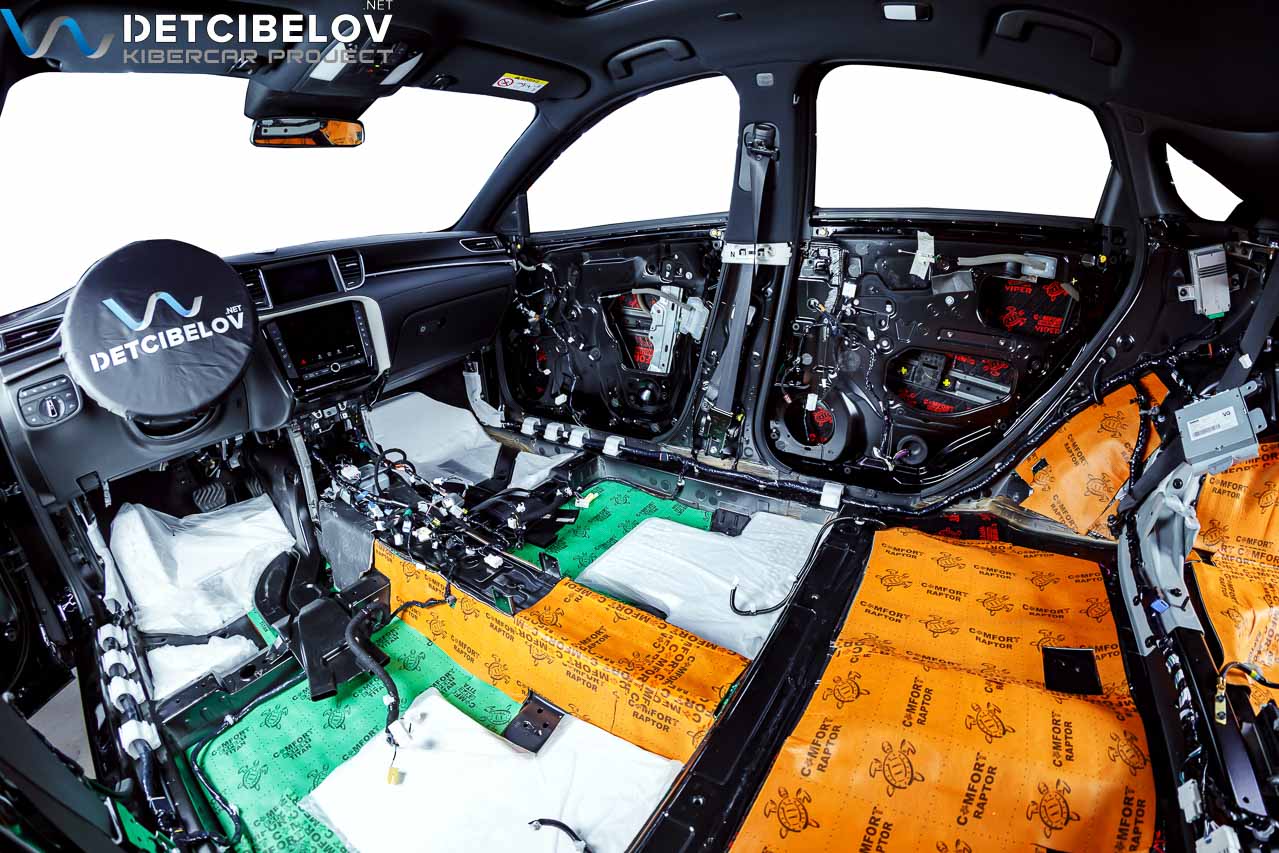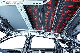 • Никаких компромиссов! Только топовые материалы последнего поколения от ТМ "Comfort mat" с максимальной эффективностью и максимальным количеством слоев. Также использование вибродемпфирующих материалов высокой жесткости с разогревом в печи и дополнительной напыляемой шумоизоляцией для колесных арок.