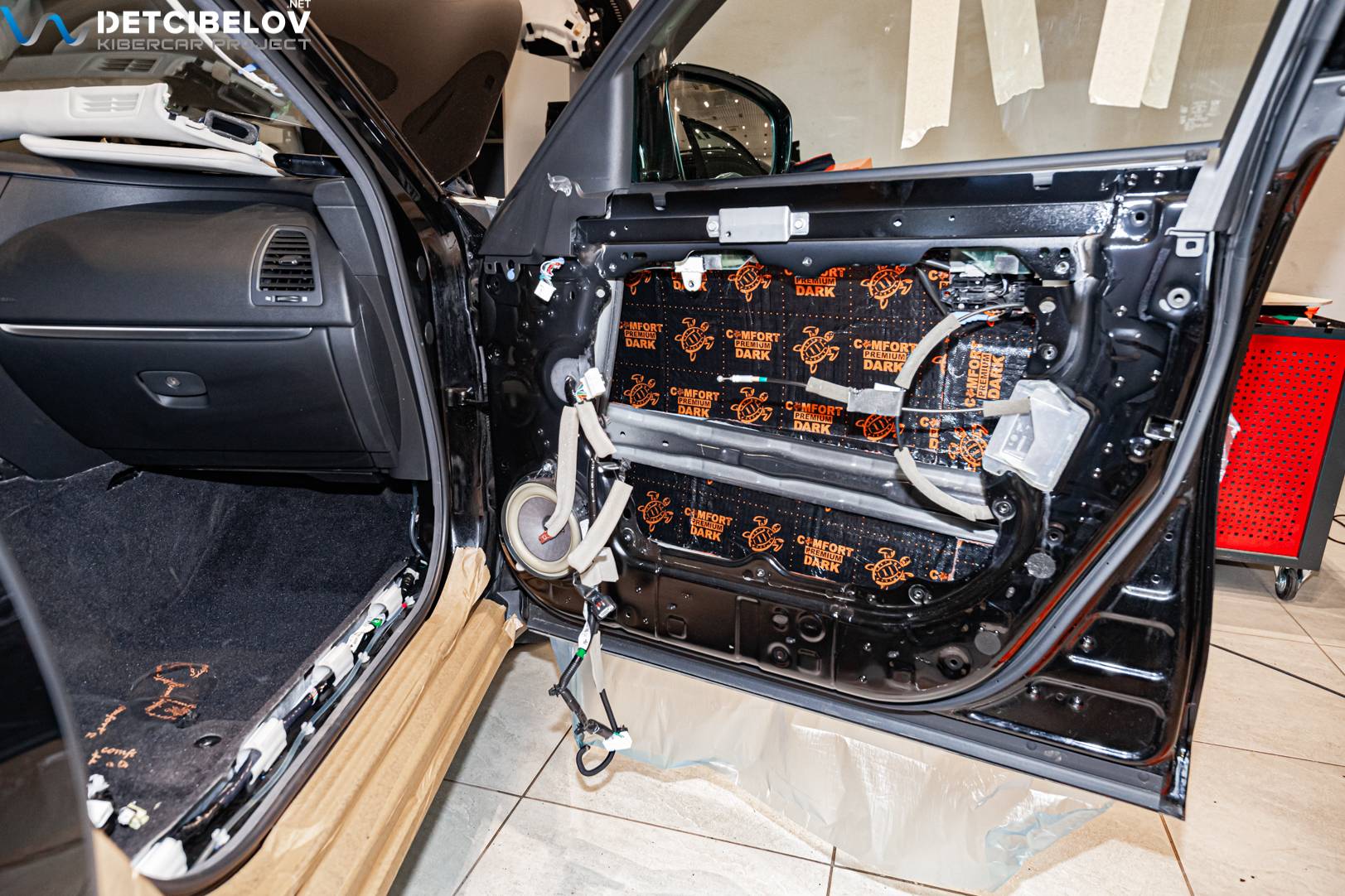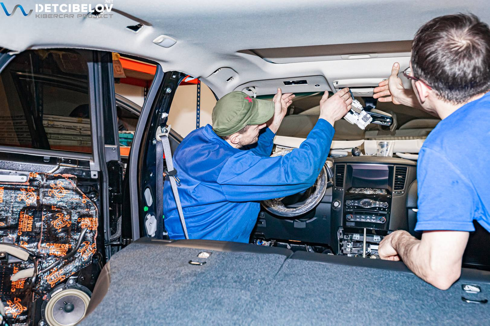 Процесс шумоизоляции салона Infiniti QX70