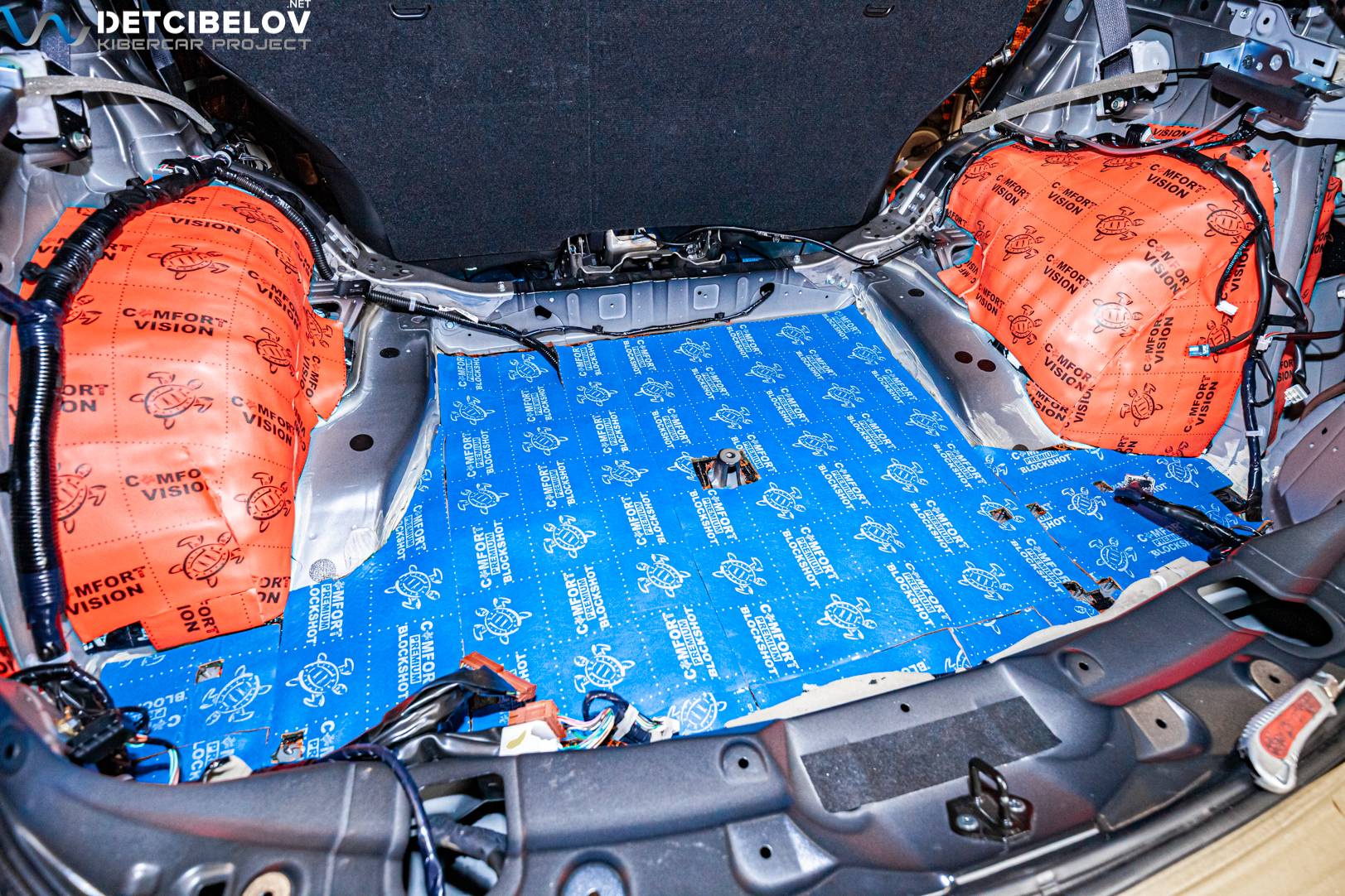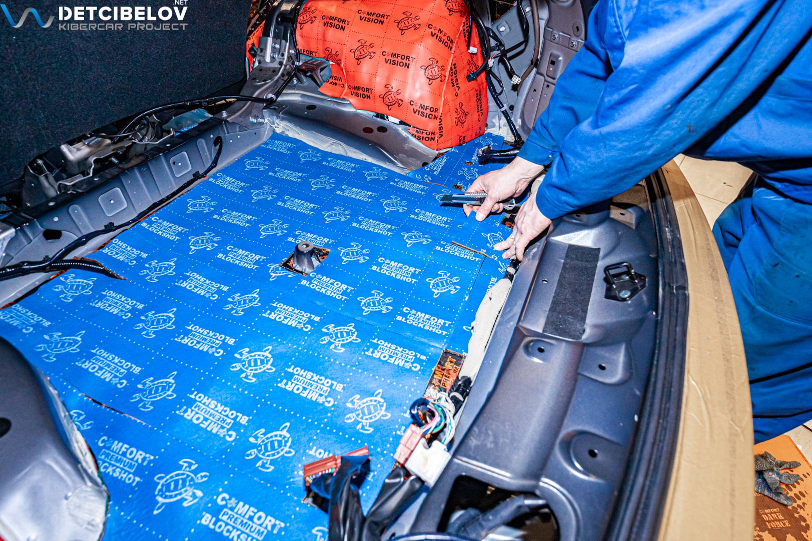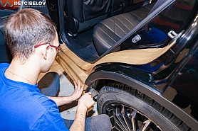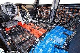 • Никаких компромиссов! Только топовые материалы последнего поколения от ТМ "Comfort mat" с максимальной эффективностью и максимальным количеством слоев. Также использование вибродемпфирующих материалов высокой жесткости с разогревом в печи и дополнительной напыляемой шумоизоляцией для колесных арок.