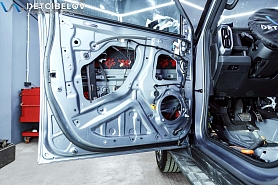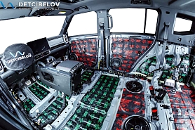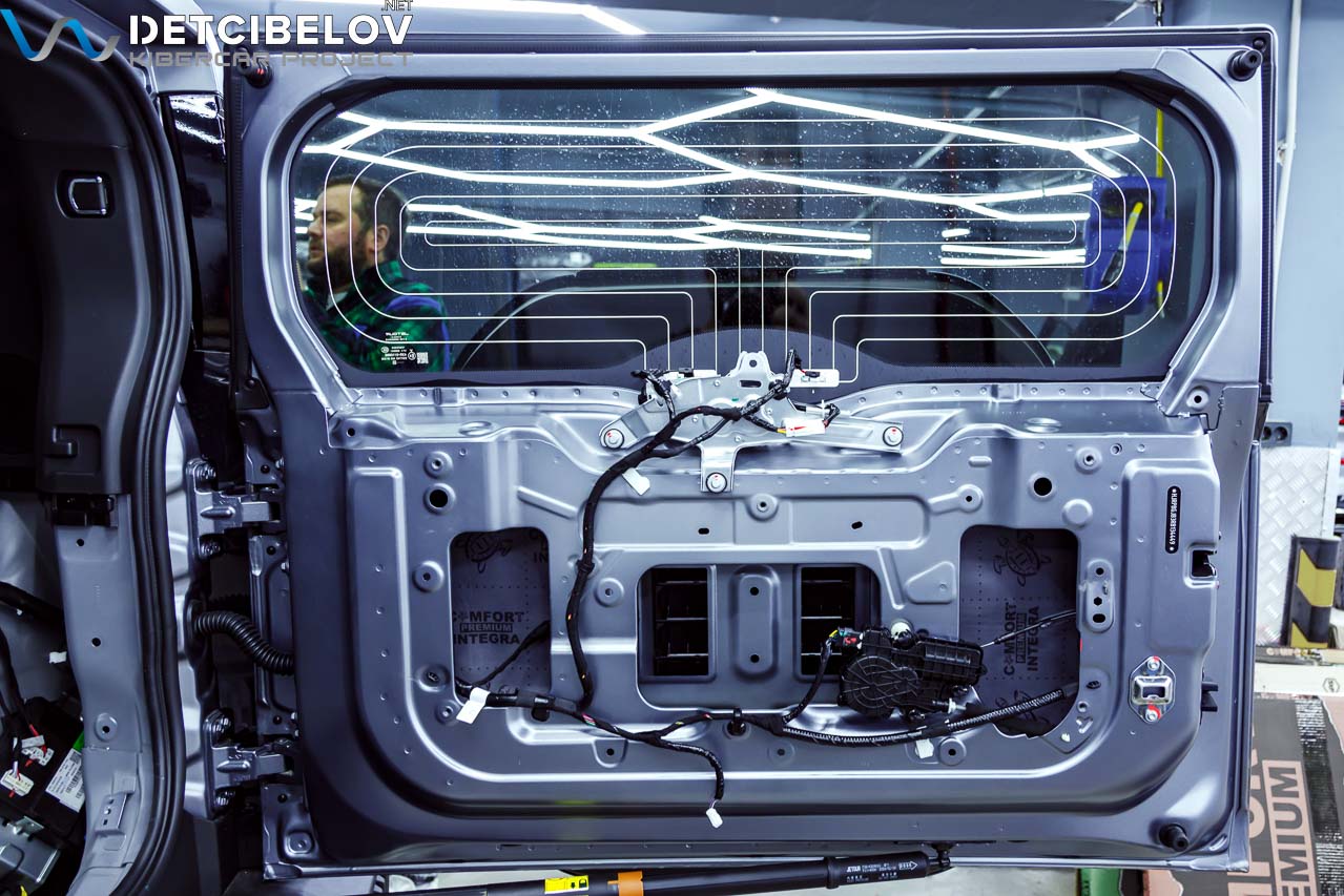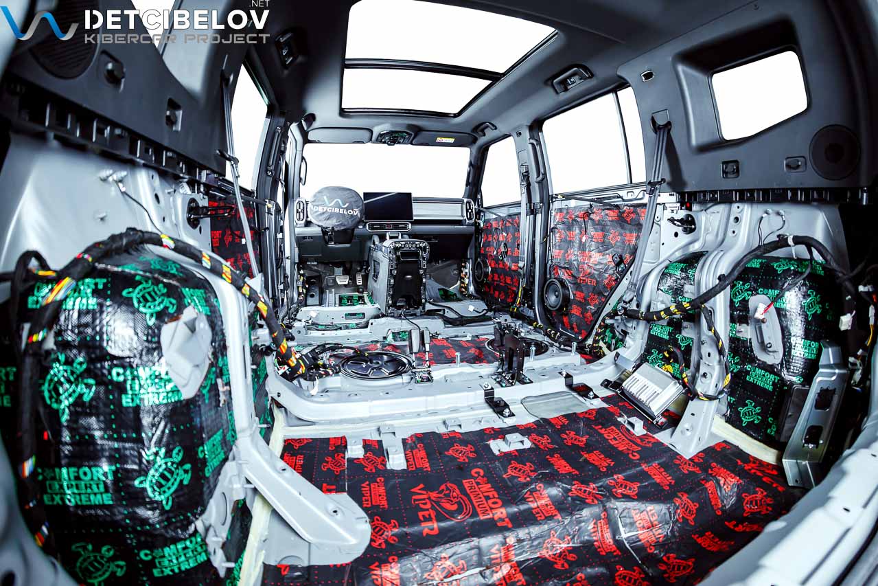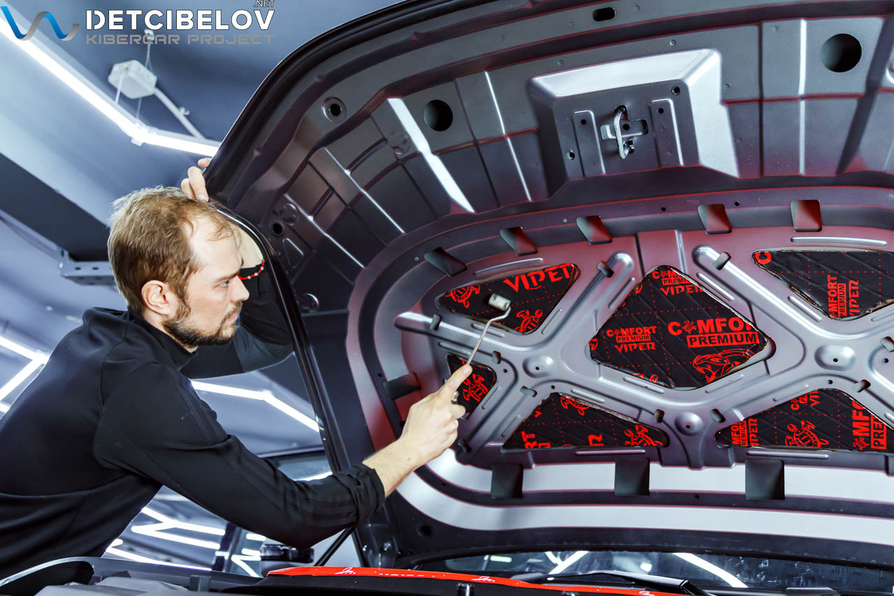 • Никаких компромиссов! Только топовые материалы последнего поколения от ТМ "Comfort mat" с максимальной эффективностью и максимальным количеством слоев. Также использование вибродемпфирующих материалов высокой жесткости с разогревом в печи и дополнительной напыляемой шумоизоляцией для колесных арок.