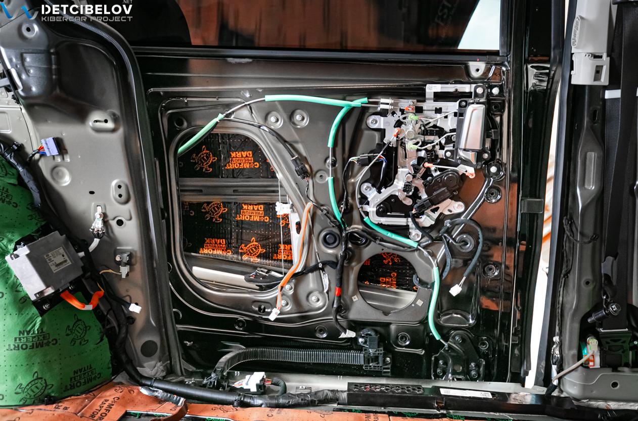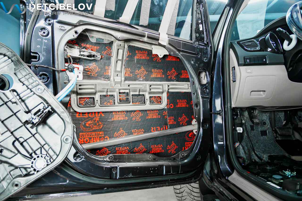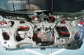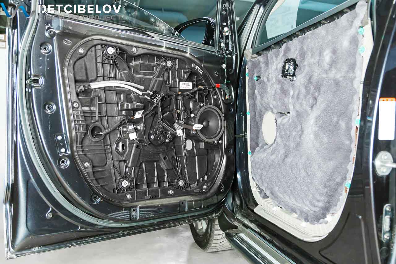 Для тюнинга этих элементов конструкции наши специалисты разработали многослойную технологическую карту. Она включает комплексную защиту от вибраций, шума и тепловых потерь. Применение легких материалов незначительно увеличивает вес дверей и силу, необходимую для их перемещения. Но эта прибавка вместе с лучшей шумоизоляцией обеспечивает солидный хлопок низкого тона при закрытии. Он ассоциируется с автомобилем премиальной категории.