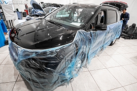 Работа всегда начинается с защиты вашего автомобиля. Эта обязательная процедура предотвращает загрязнение салона и случайные повреждения ЛКП, пластиковых деталей обвеса, сидений, других элементов конструкции. Для надежной защиты отдельных частей мы применяем полимерную пленку, скотч, специализированные чехлы. Их демонтаж на финишном этапе выполняется аккуратно с удалением остатков клея и пыли.