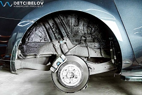 Шумоизоляция торпедо и колесных арок снаружи – за доплату.