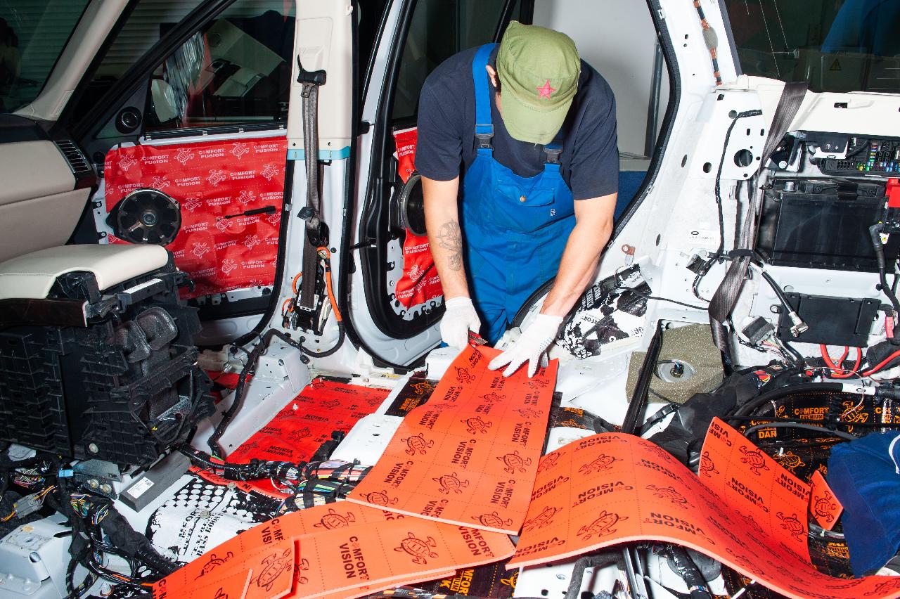 Процесс шумоизоляции салона Range Rover Vogue