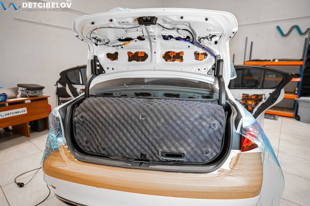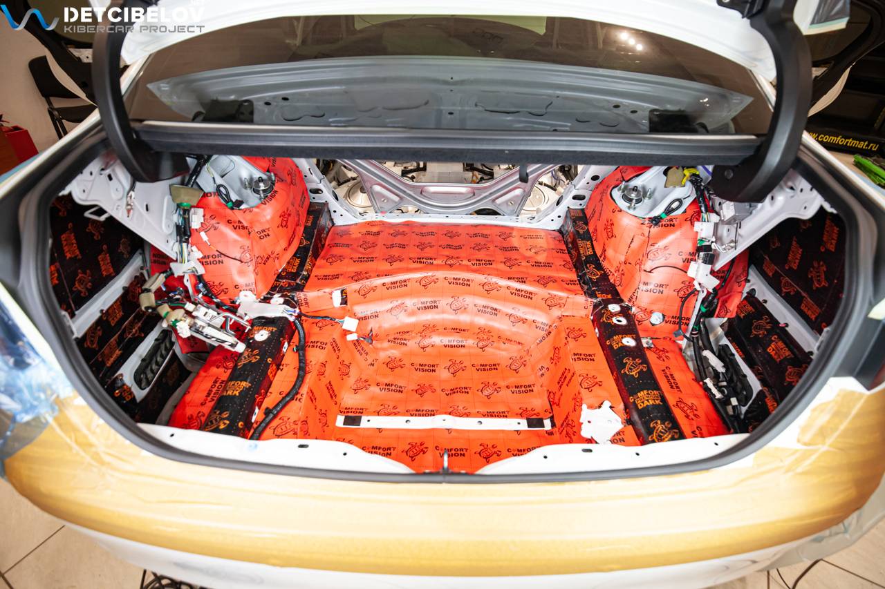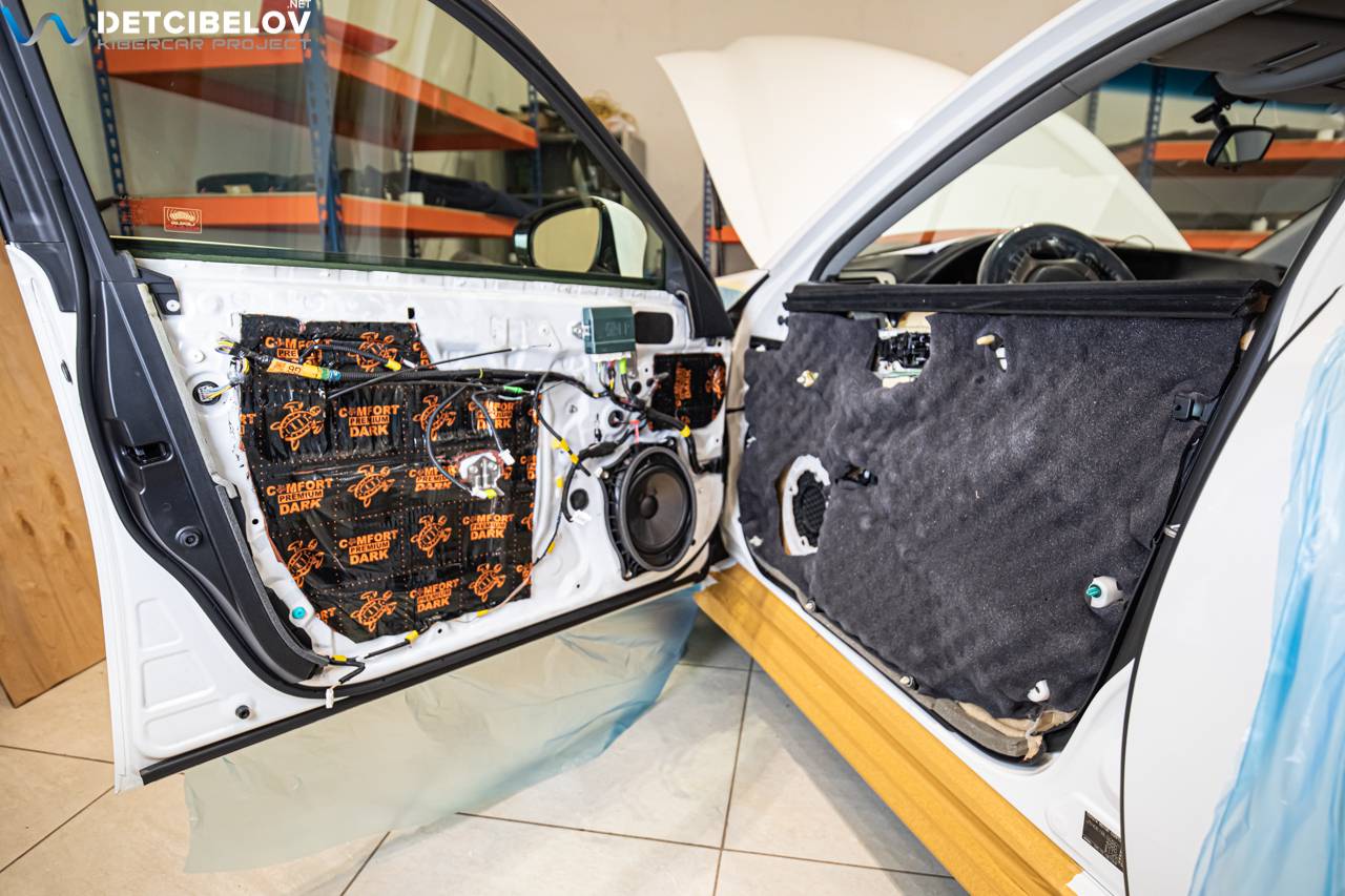 • Никаких компромиссов! Только топовые материалы последнего поколения от ТМ "Comfort mat" с максимальной эффективностью и максимальным количеством слоев. Также использование вибродемпфирующих материалов высокой жесткости с разогревом в печи и дополнительной напыляемой шумоизоляцией для колесных арок.