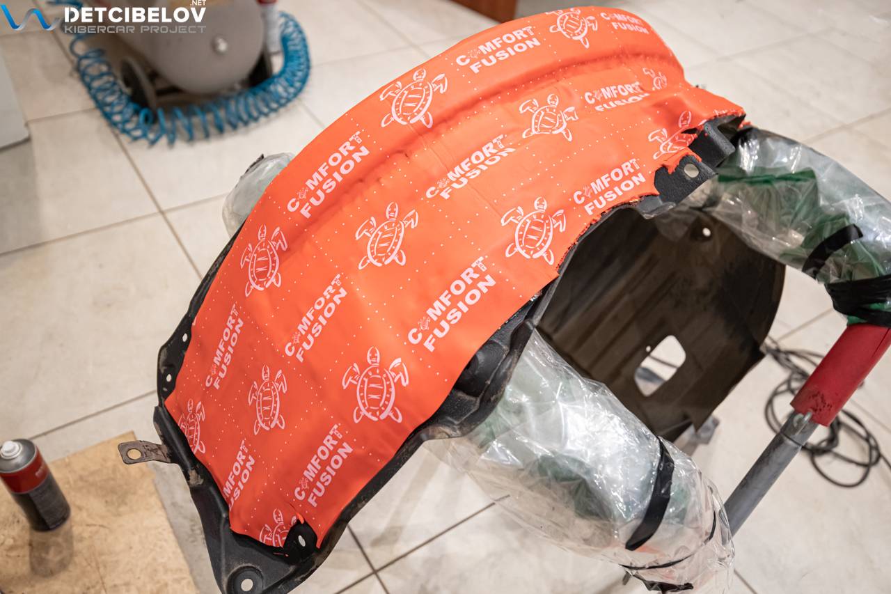 Четвертый, завершающий слой – Comfort mat Fusion Red. Материал толщиной 3 мм будет отвечать за шумопоглощение на участке колесных арок.