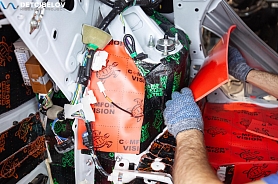 Для обесшумливания крыши аккуратно разбираем обшивку. Команда работает в одноразовых перчатках, так что можно не опасаться повреждения поверхности. Металл зачищаем и обезжириваем, дожидаемся высыхания.