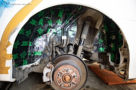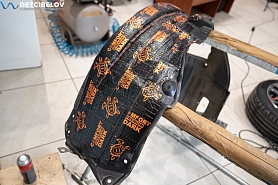 Шумоизоляция колесных арок – завершающий этап полной шумоизоляции автомобиля. Для ее проведения демонтируем подкрылки, очищаем и обезжириваем.