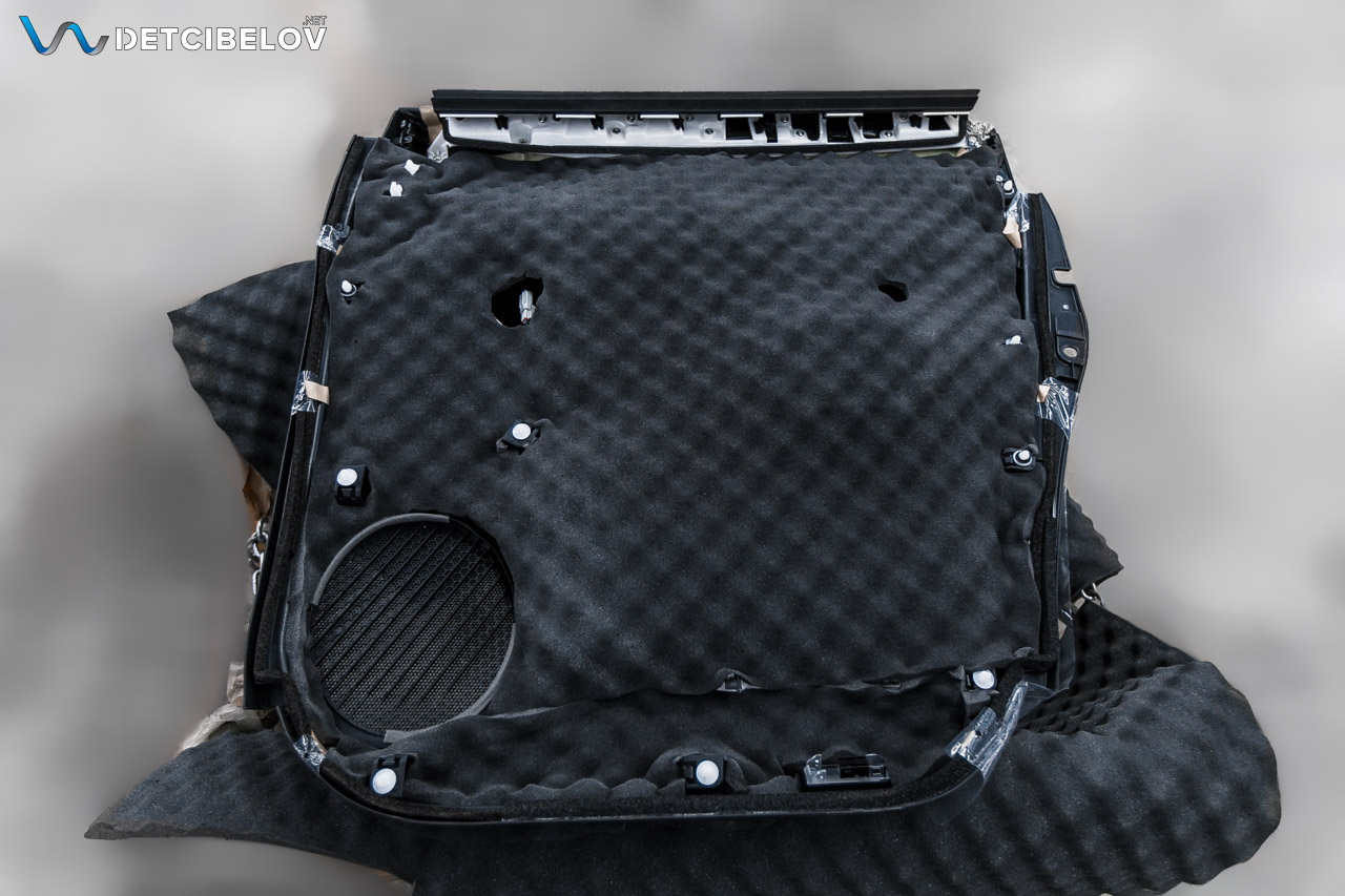 На крышку багажника мы нанесли виброакустический материал Comfortmat Aerospace Volt (2,5 мм), а в качестве второго слоя использовали материал Comfort mat Wave Expert (15 мм) с увеличенным коэффициентом шумопоглощения.