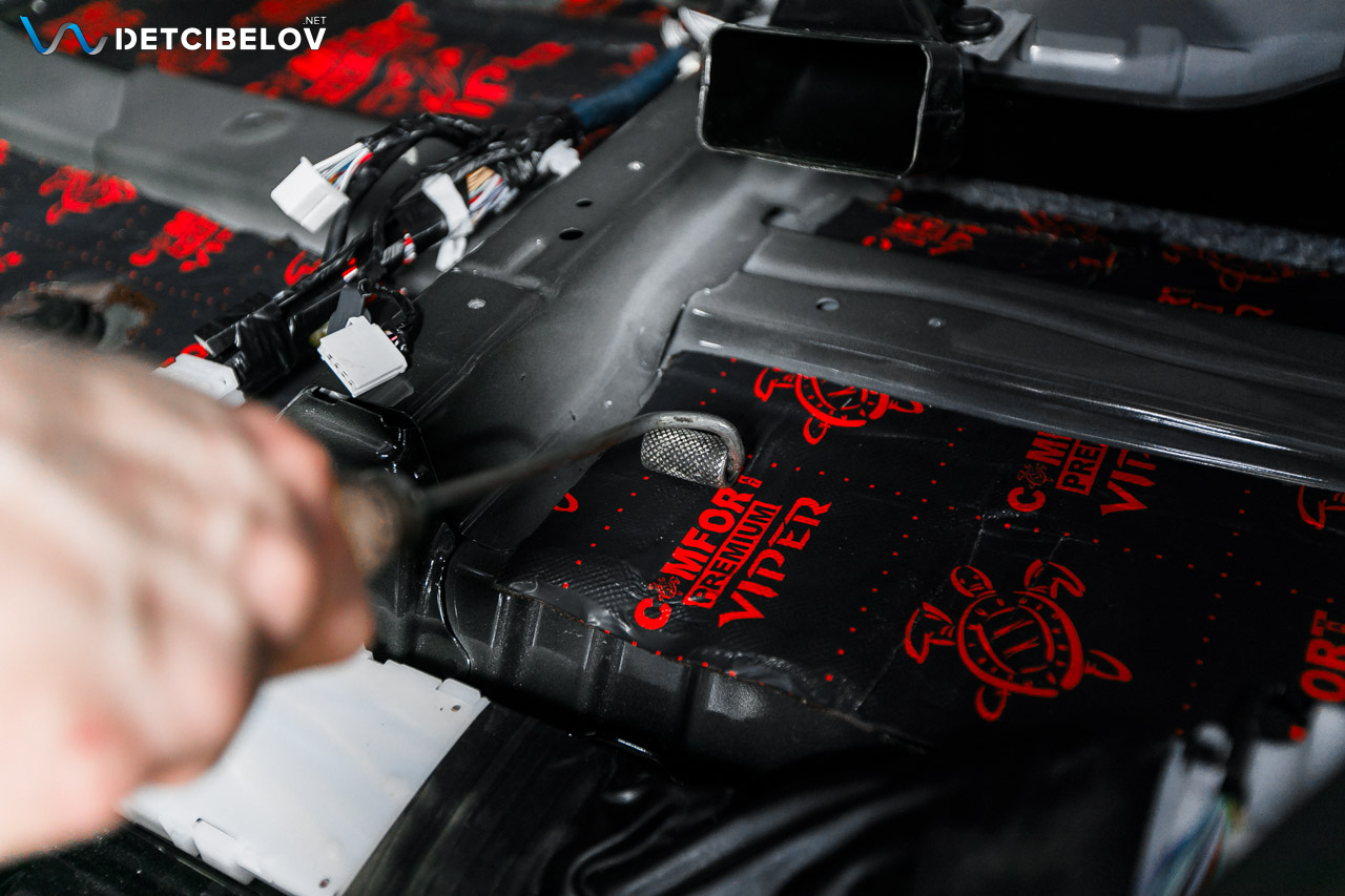 Первым слоем наносим Comfort mat Spider (3.5 vv) – cовременный виброизоляционный материал, предназначенный для эффективного снижения уровня шума и вибраций в автомобиле.