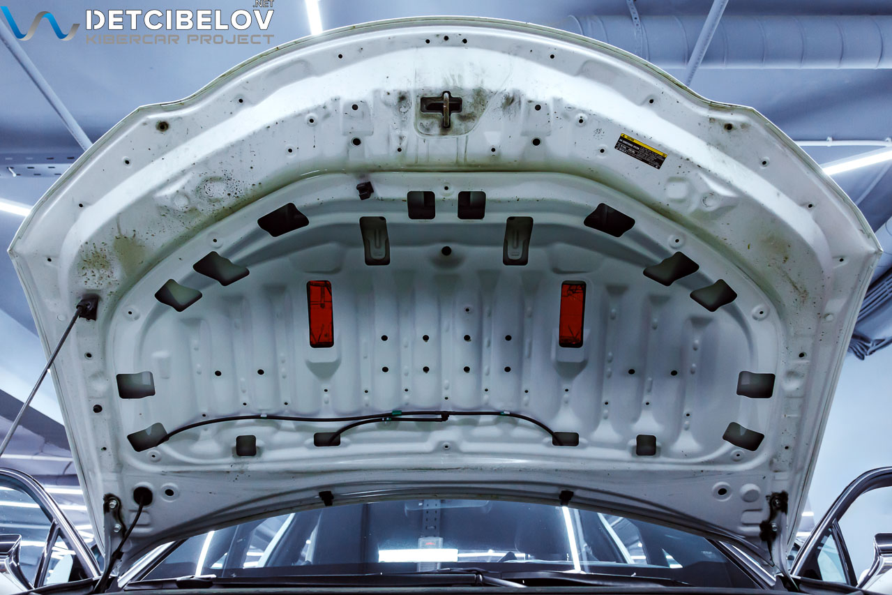 Шумоизоляция торпедо и колесных арок снаружи – за доплату.