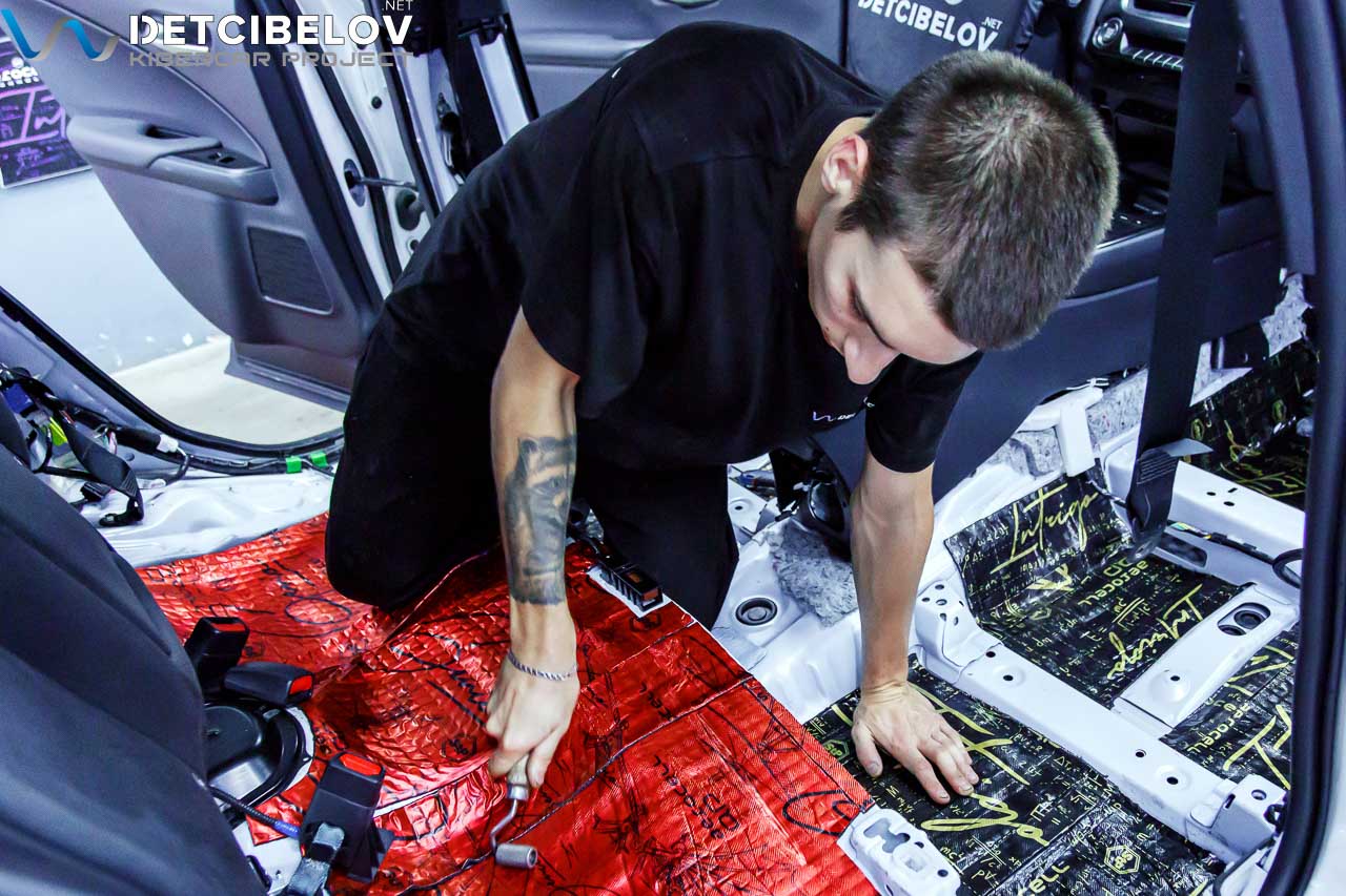 • Никаких компромиссов! Только топовые материалы последнего поколения от ТМ "Comfort mat" с максимальной эффективностью и максимальным количеством слоев. Также использование вибродемпфирующих материалов высокой жесткости с разогревом в печи и дополнительной напыляемой шумоизоляцией для колесных арок.