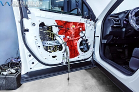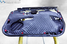 • Самая легкая шумоизоляция автомобиля от ведущих брендов. Она обеспечивает оптимальный результат при однослойной обработке кузова автомобиля. Материал обладает одновременно как шумо-, так и виброизоляционными свойствами, что позволяет укладывать материал в один слой, вместо двух, используемых при многослойной классической шумоизоляции автомобиля. Также мы дополнительно обрабатываем двери акустическим материалом для снижения скрипов и увеличения акустического комфорта.