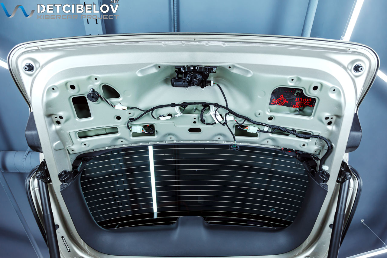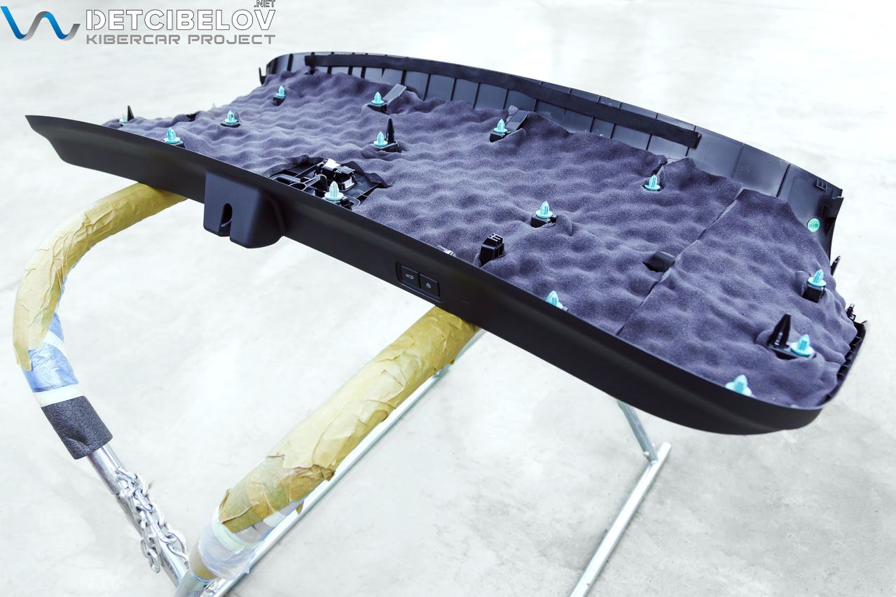 На крышку багажника клеим Comfort mat Viper. Пластиковую панель обрабатываем дополнительно, устанавливая слой Comfort mat Wave Expert – шумопоглотителя с высокоячеистой структурой.