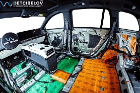 • Шумоизоляция днища. Проводится укладка виброизоляционных материалов в нише багажника и на полу в салоне.