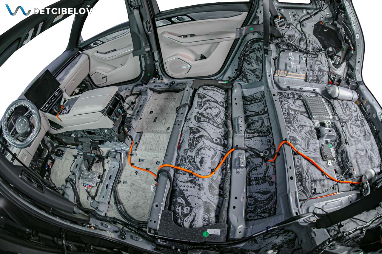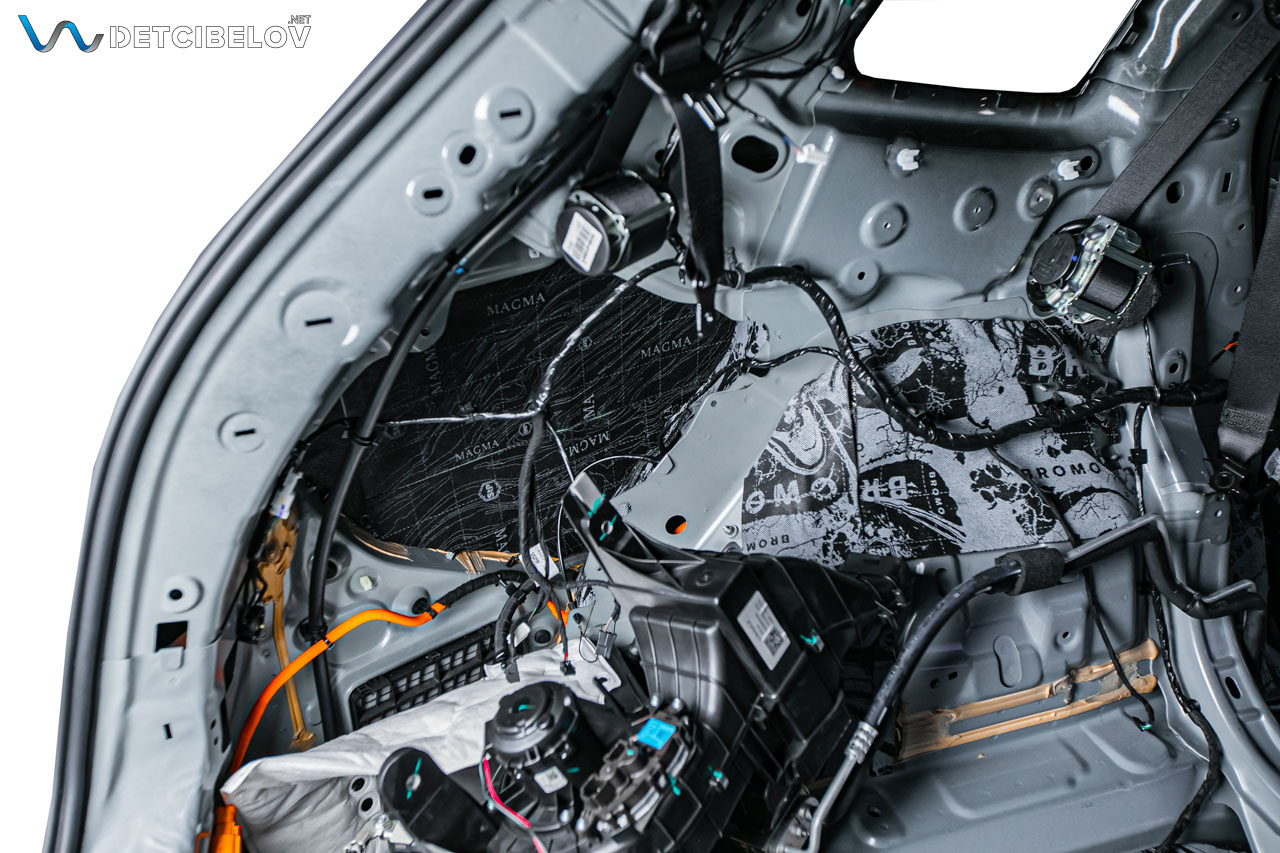 StP Bromo (7 мм) – комбинированный материал-сэндвич, объединяющий в себе функции звукопоглощения и звукоизоляции. Открытоячеистая структура мягкого слоя эффективно рассеивает звук и уменьшает его амплитуду. Тяжелая звукозащитная мембрана отражает проникающие звуковые волны и не пропускает их во внутреннее пространство автомобиля. Наносим его на пол под задними сиденьями, пол в багажнике и внутренние арки.