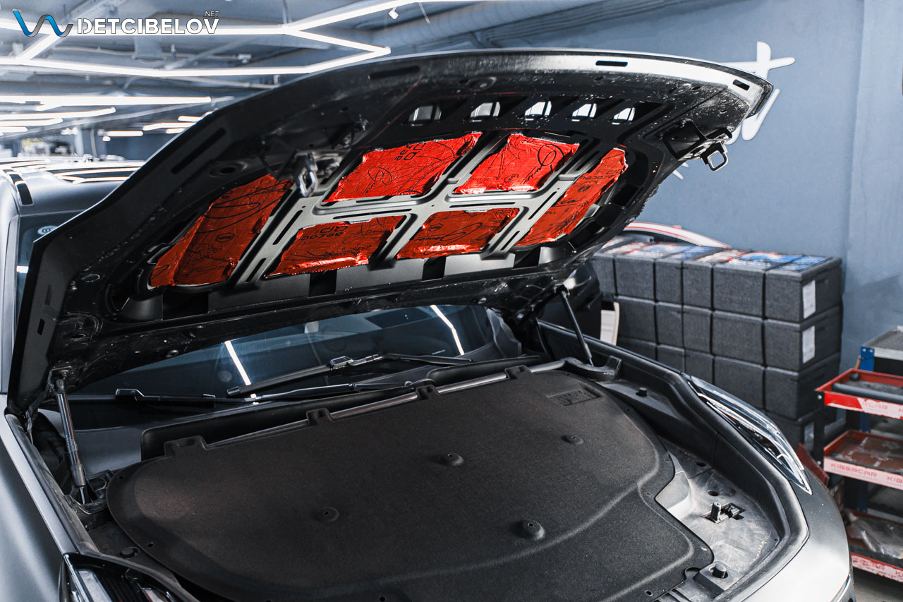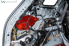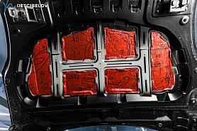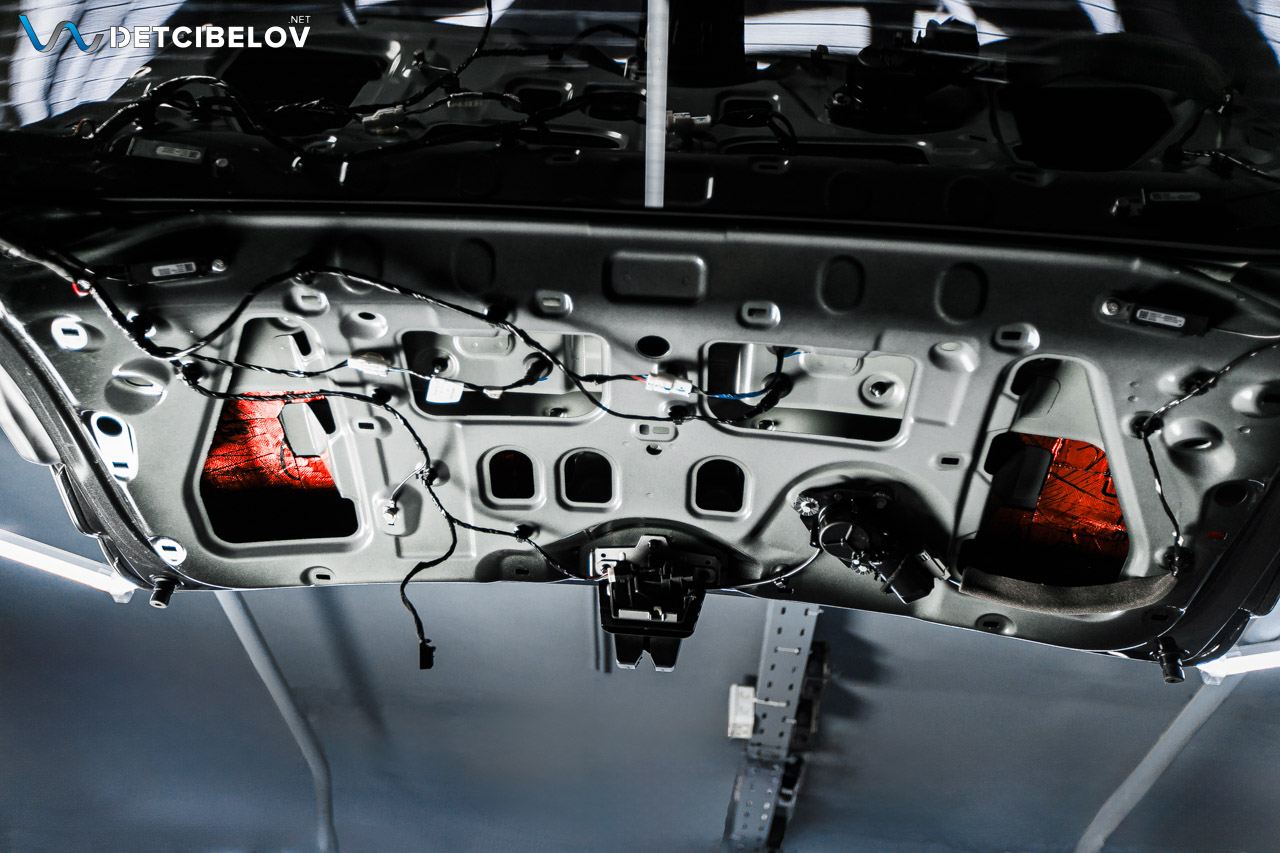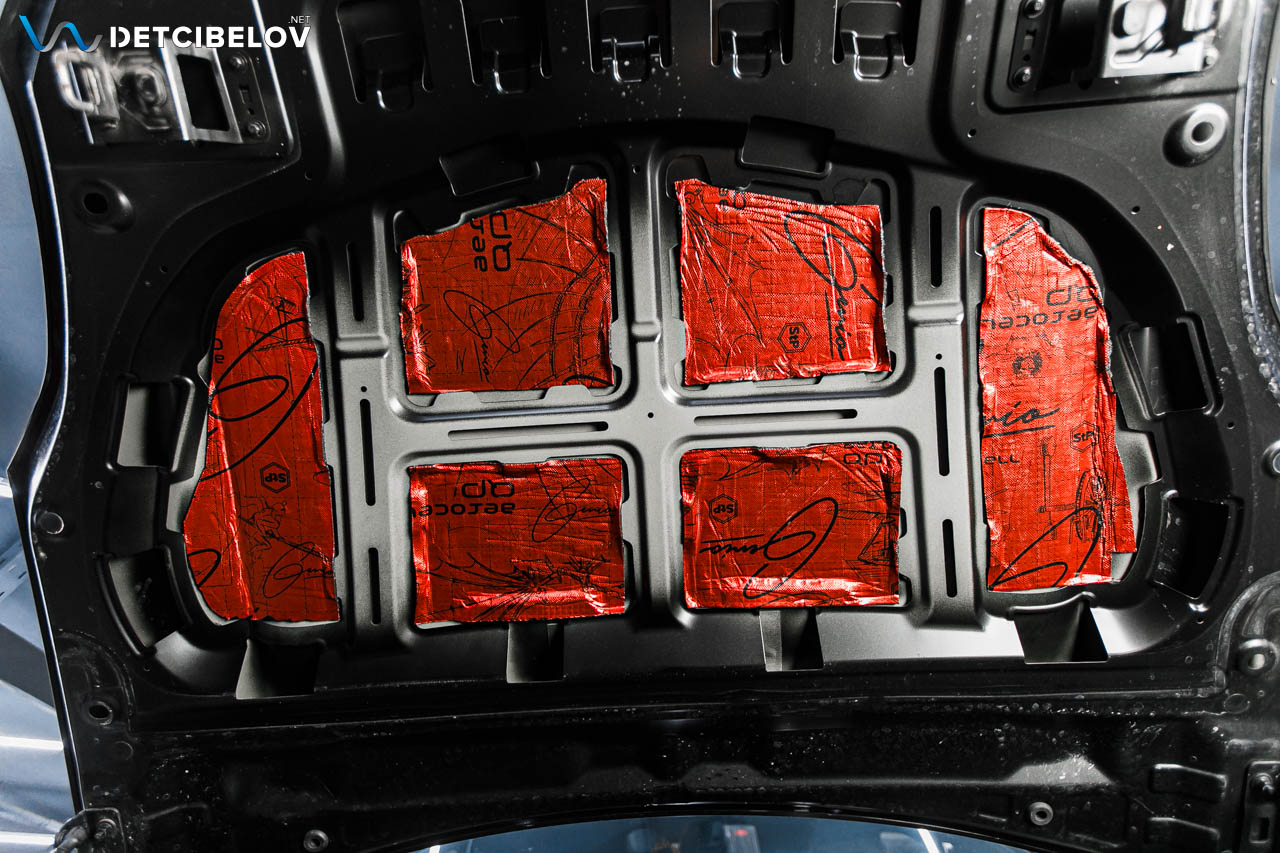 На крышку багажника мы демпферно нанесли Aerocell QP Genio (4 мм), а на пластиковую панель наклеили StP Biplast Premium (15 мм) с увеличенным коэффициентом шумопоглощения.
