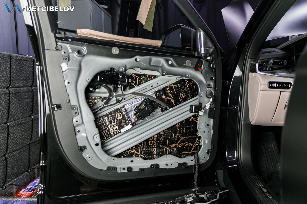 Работы по шумоизоляции начинаем с дверей. Максимально аккуратно разбираем дверные обшивки. После этого подготавливаем поверхность и обезжириваем все участки и наносим первый слой: