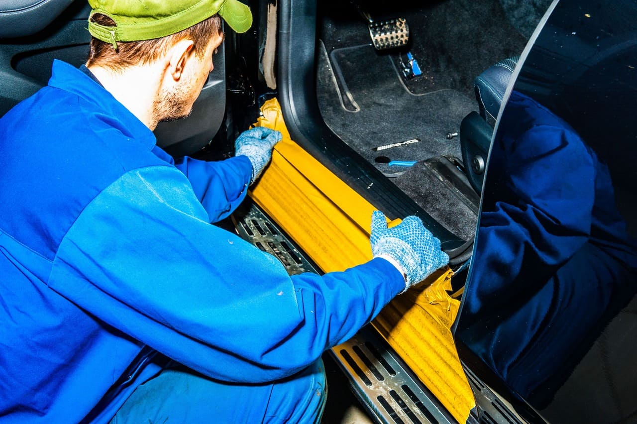 Процесс шумоизоляции салона Mercedes-Benz
