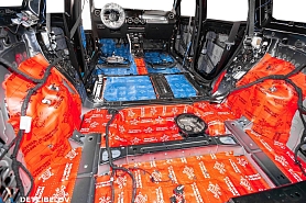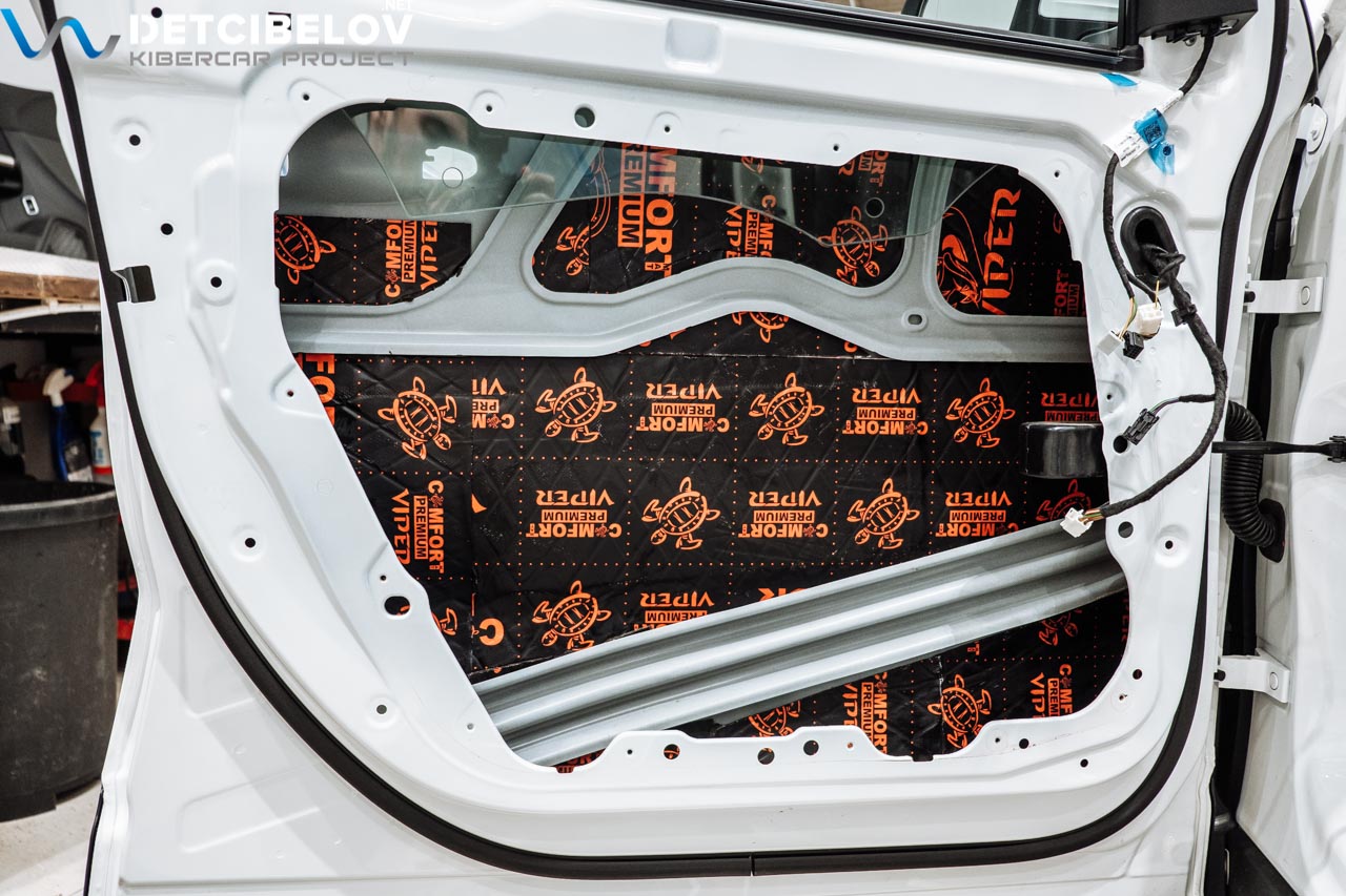 • Никаких компромиссов! Только топовые материалы последнего поколения от ТМ "Comfort mat" с максимальной эффективностью и максимальным количеством слоев. Также использование вибродемпфирующих материалов высокой жесткости с разогревом в печи и дополнительной напыляемой шумоизоляцией для колесных арок.