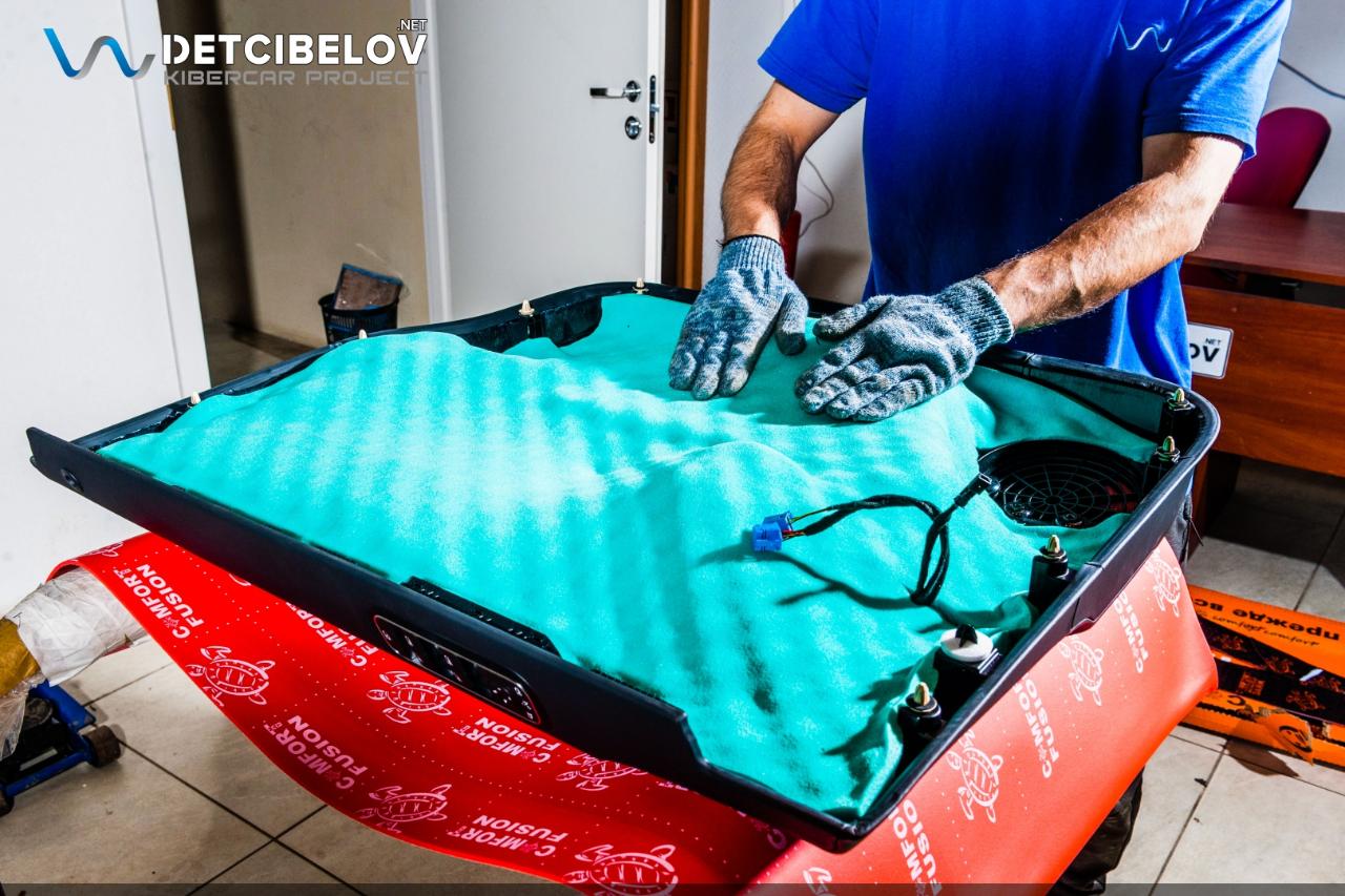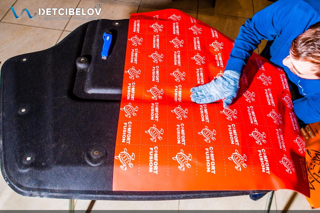 В багажнике следующим слоем клеим Comfort mat Fusion Red (3 мм) – материал с шумопоглощающими свойствами.