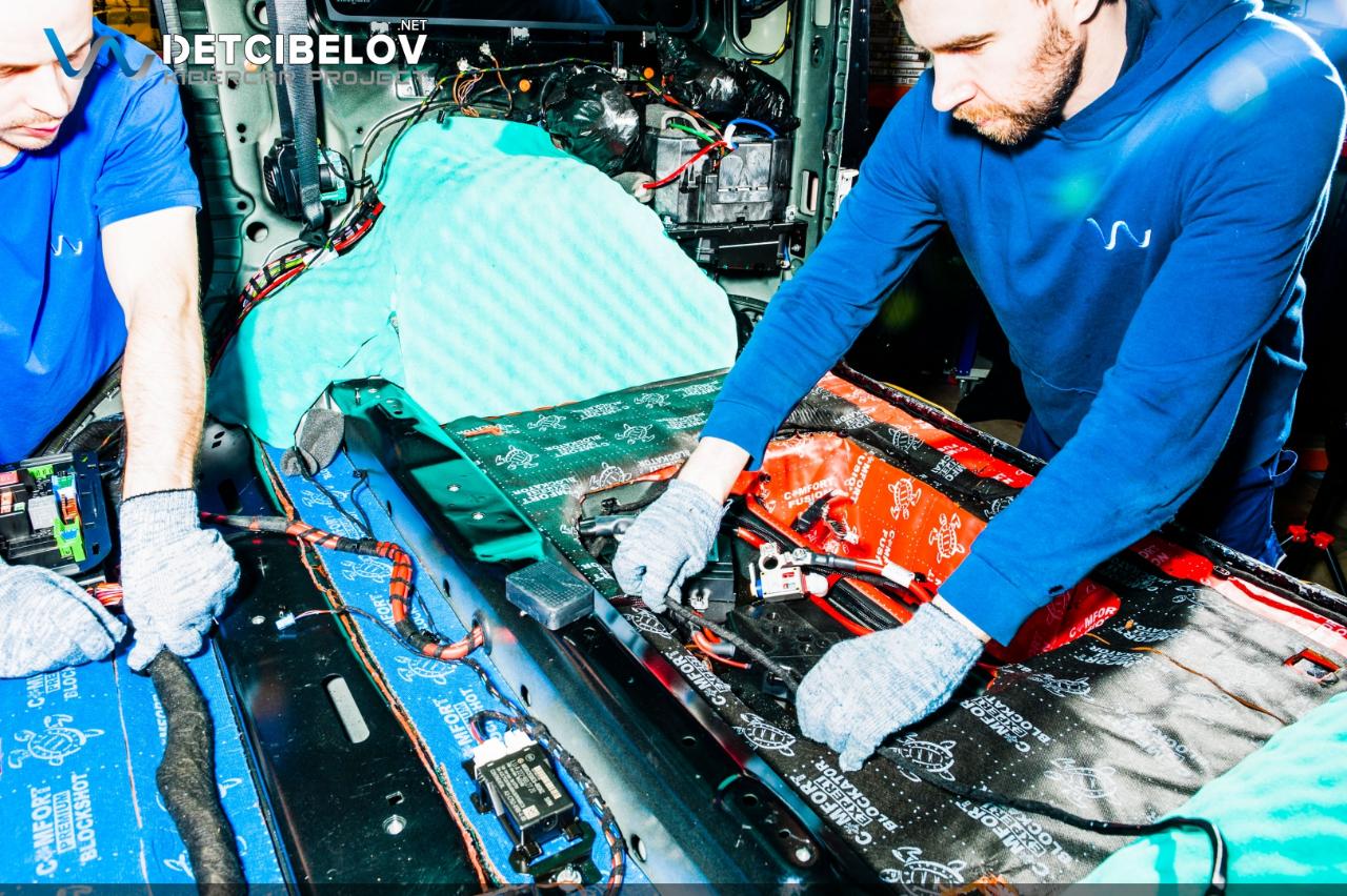 • Никаких компромиссов! Только топовые материалы последнего поколения от ТМ "Comfort mat" с максимальной эффективностью и максимальным количеством слоев. Также использование вибродемпфирующих материалов высокой жесткости с разогревом в печи и дополнительной напыляемой шумоизоляцией для колесных арок.