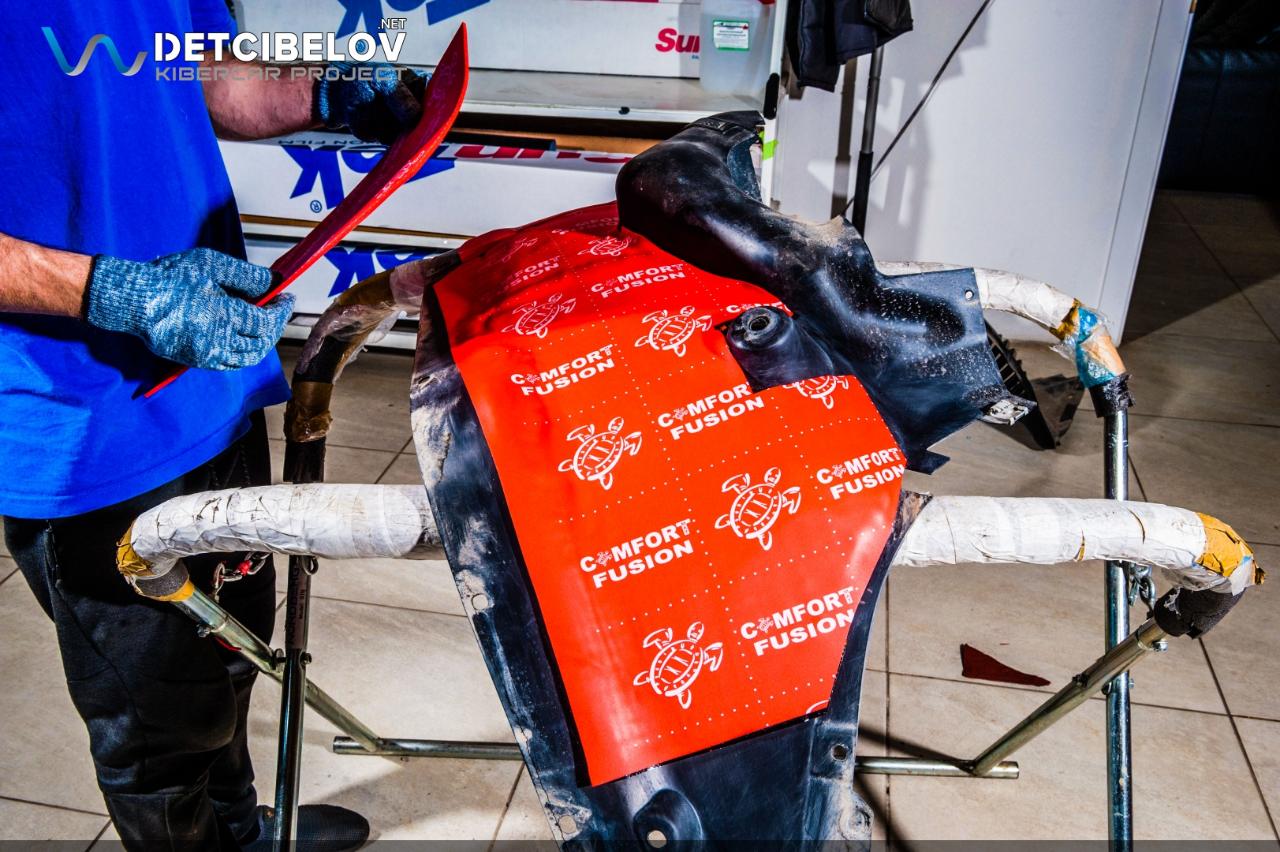 Подготовленный Comfort mat Extreme 3.5 укладываем на полу в салоне. Этот же виброизолятор используем на поверхности внутренних арок в качестве первого слоя.