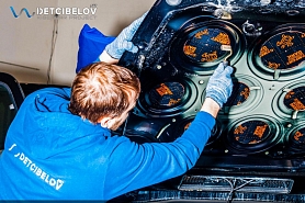 Цена зависит от нескольких факторов: выбранный клиентом тариф, год выпуска авто и текущее его состояние. В любом случае названная стоимость не поменяется до конца работы. И не беспокойтесь за дилерскую гарантию, если таковая имеется. Наши специалисты работают аккуратно. После шумоизоляции капота, кузова, дверей, колесных арок и других элементов авто вы сохраните возможность обслуживаться у дилера.