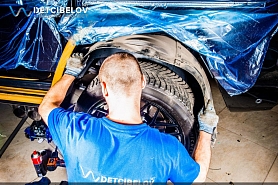 Оклеиваем внутреннюю поверхность колесных арок вибродемпфером Comfort mat Extreme 3.5.