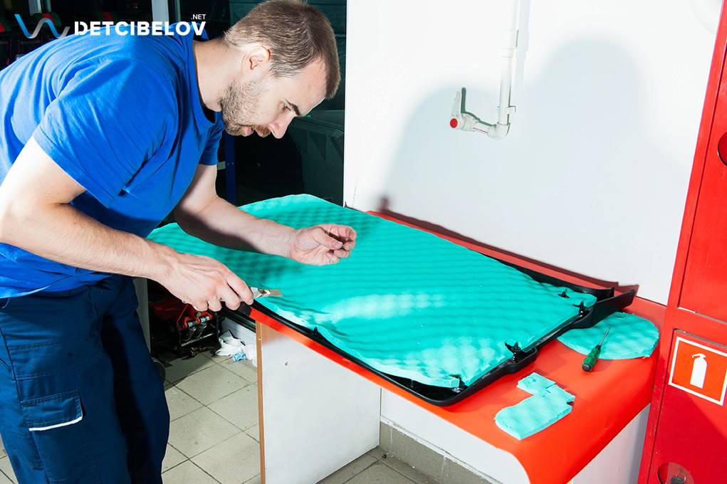 Финальный слой – легкий материал с комбинированными Vision Red (6 мм). Он улучшит звукоизоляцию и шумопоглощение на этом участке. После укладки материала автомобиль собираем и, убедившись в целостности и сохранности каждой детали, возвращаем владельцу.