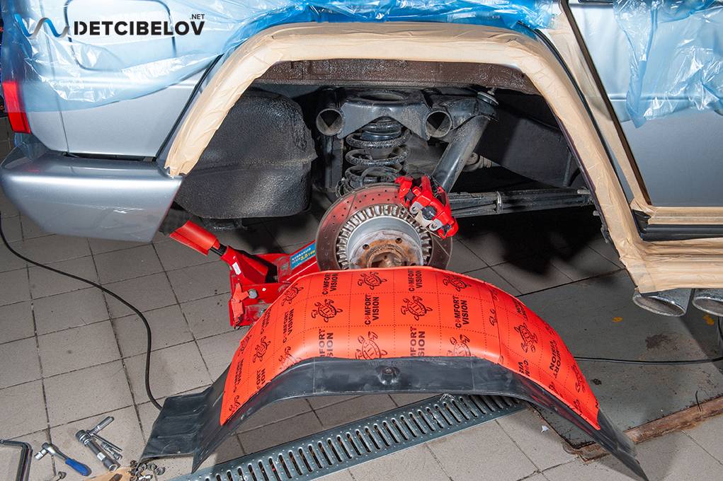 Шумоизоляция торпедо и колесных арок снаружи – за доплату.